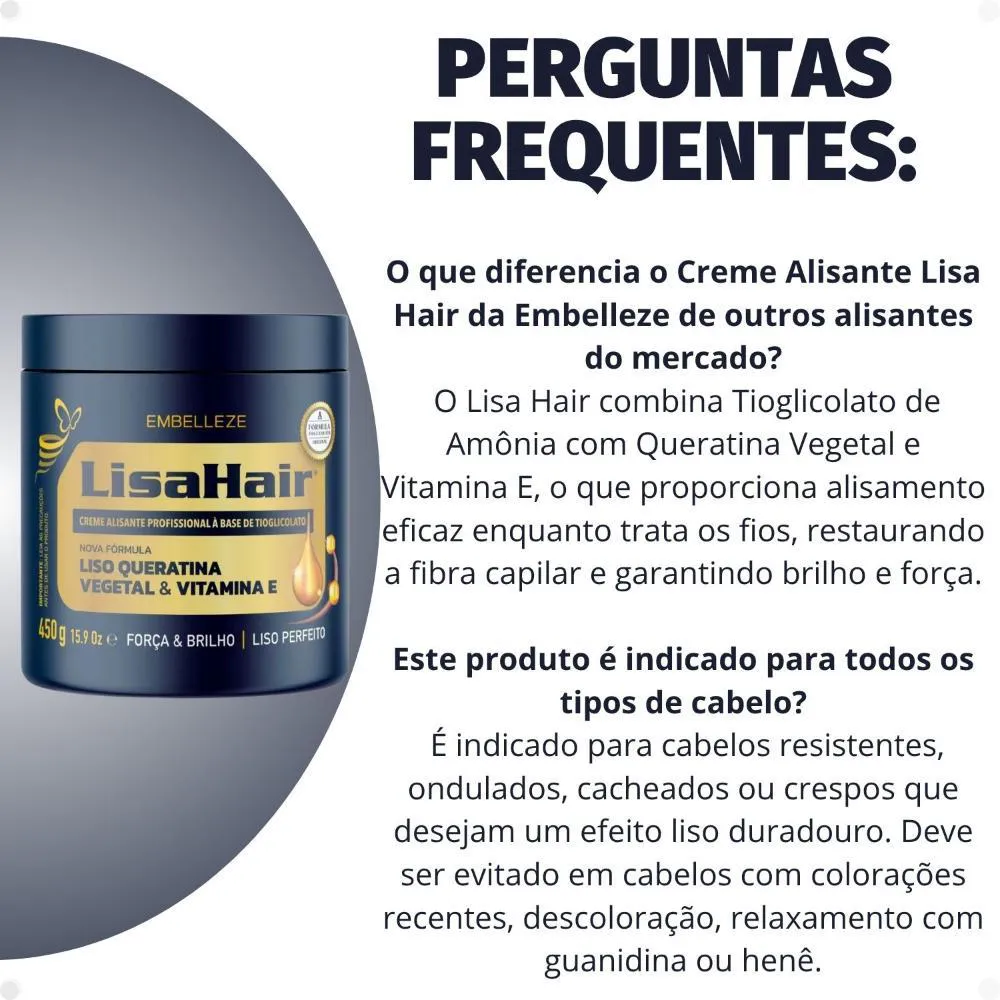 Creme Alisante Tioglicolato Embelleze Lisa Hair 450g: Liso Perfeito com Força e Brilho