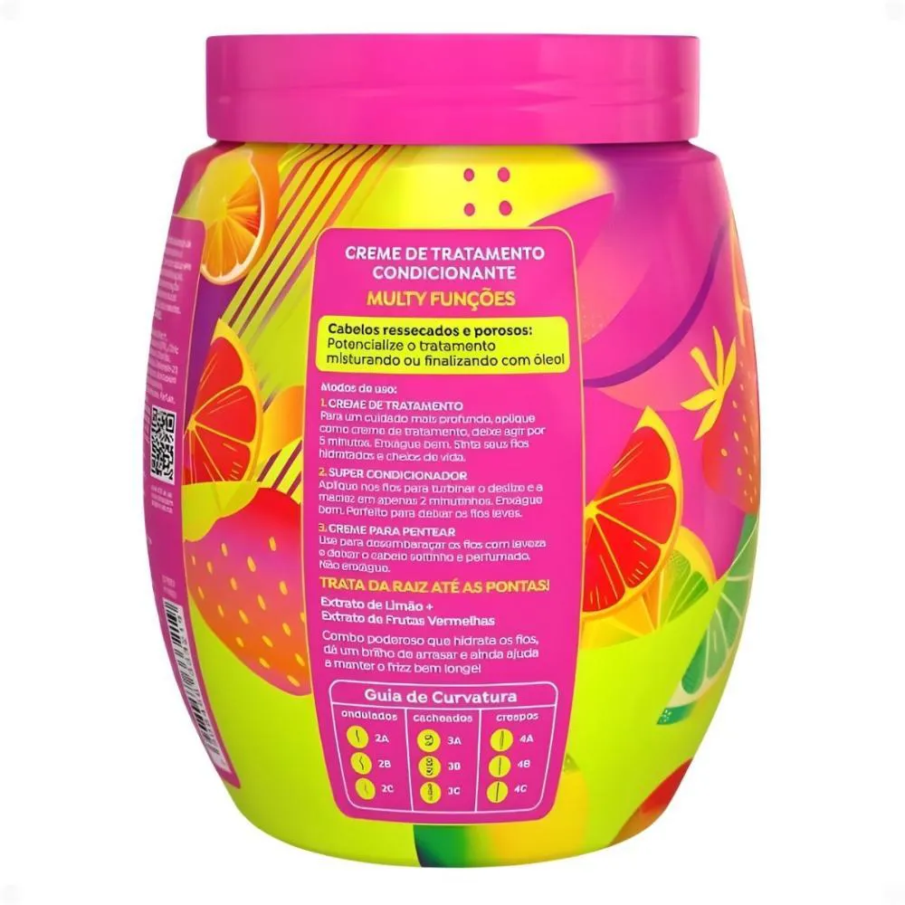 Fórmula 3 em 1: atua como creme de tratamento, super condicionador e creme para pentear.Enriquecido com Extrato de Limão e Extrato de Frutas Vermelhas para nutrição e vitalidade.Produto vegano e não testado em animais, alinhado com práticas de beleza conscientes.Fragrância deliciosa frutal cítrico que perfuma os cabelos.Embalagem econômica de 1kg (1000 ml), ideal para uso diário e prolongado.Ocasiões de Uso e Cenários Ideais