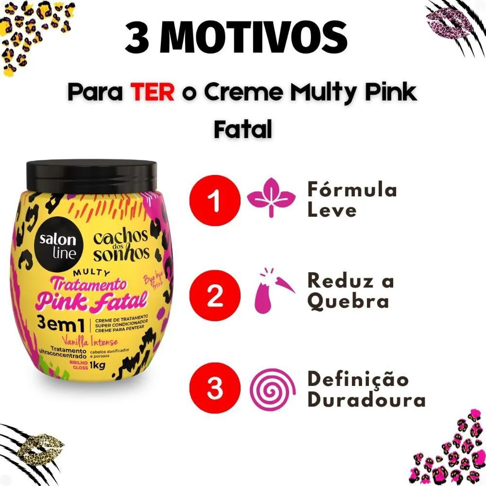 Creme Capilar 3 em 1 Salon Line Multy Tratamento Pink Fatal Cachos dos Sonhos 1Kg