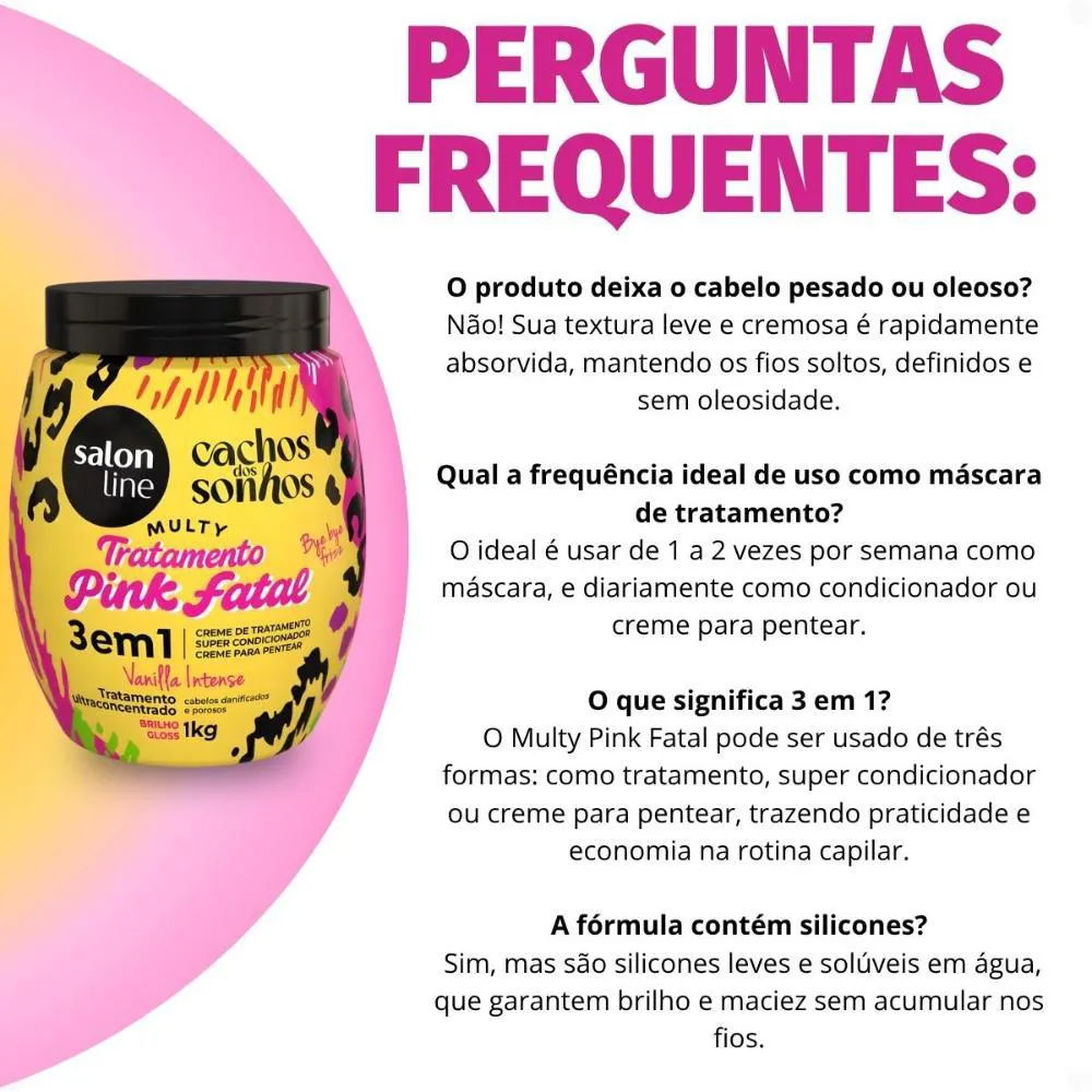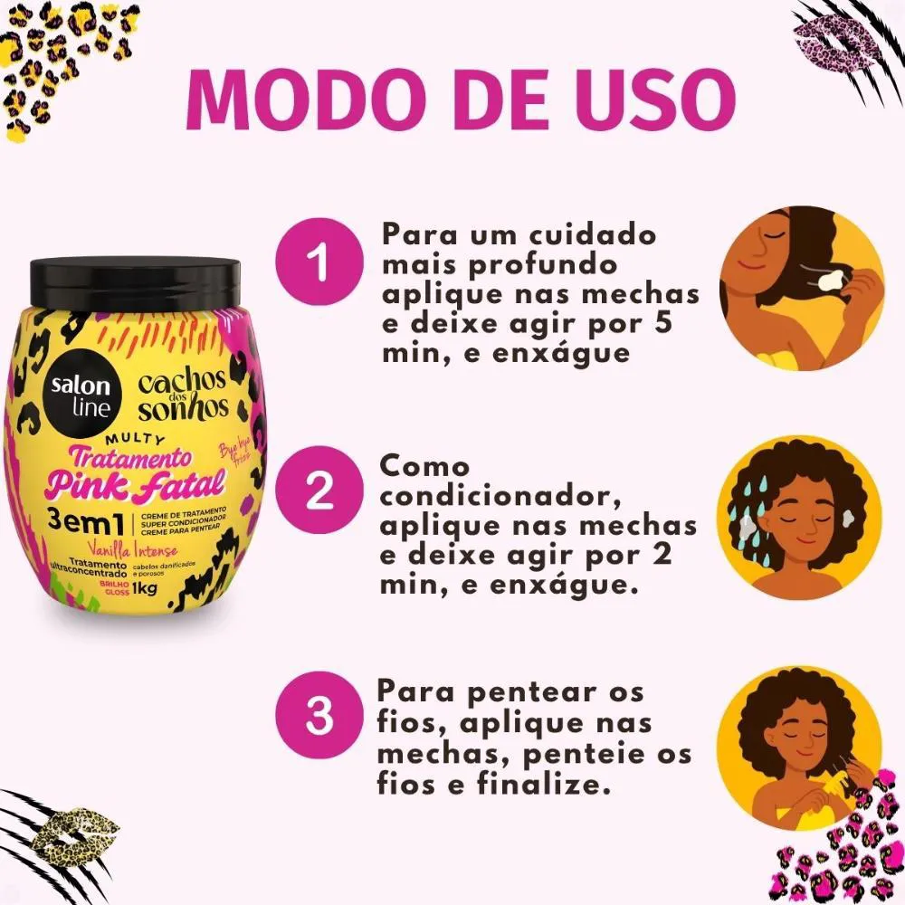 Creme Capilar 3 Em 1 Salon Line Multy Tratamento Pink Fatal Cachos Dos Sonhos 1kg