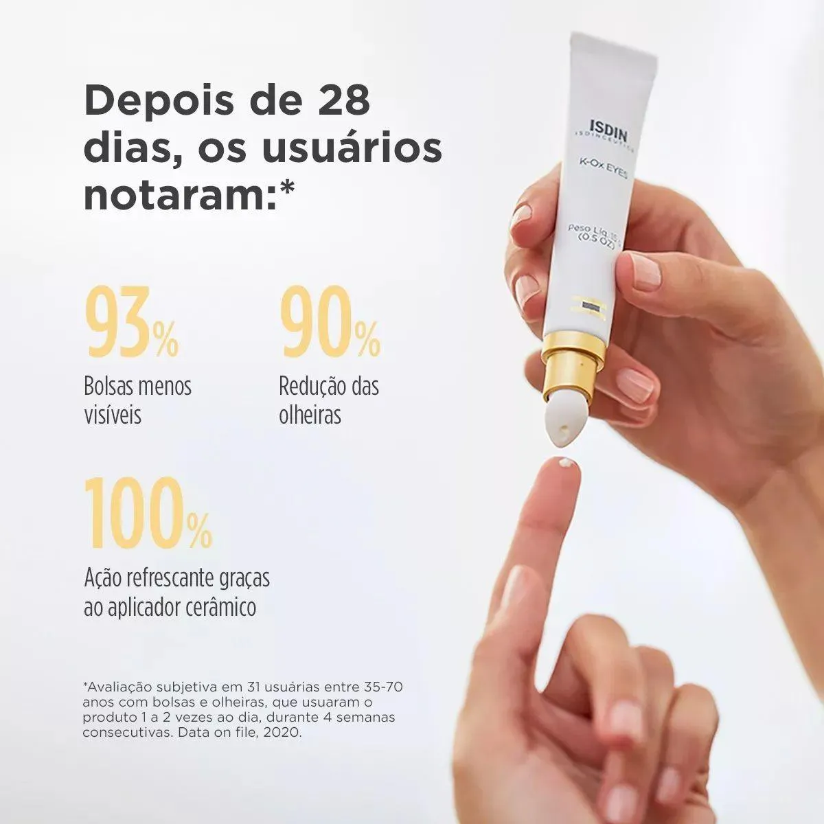 - Uso exclusivo para área do contorno dos olhos, evitando contato direto com os olhos.
