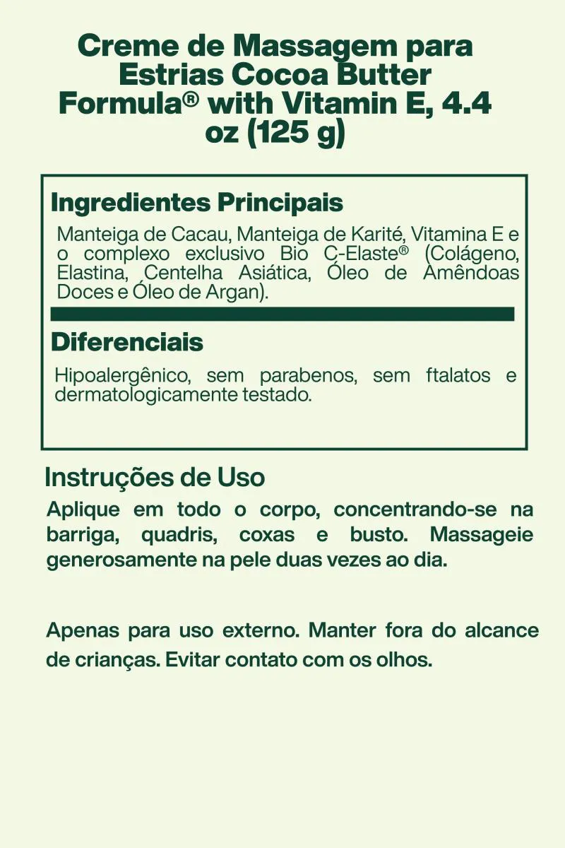 Creme de Massagem para Estrias Cocoa Butter Formula® With Vitamin E, 4.4 Oz (125 G) - Palmer'S