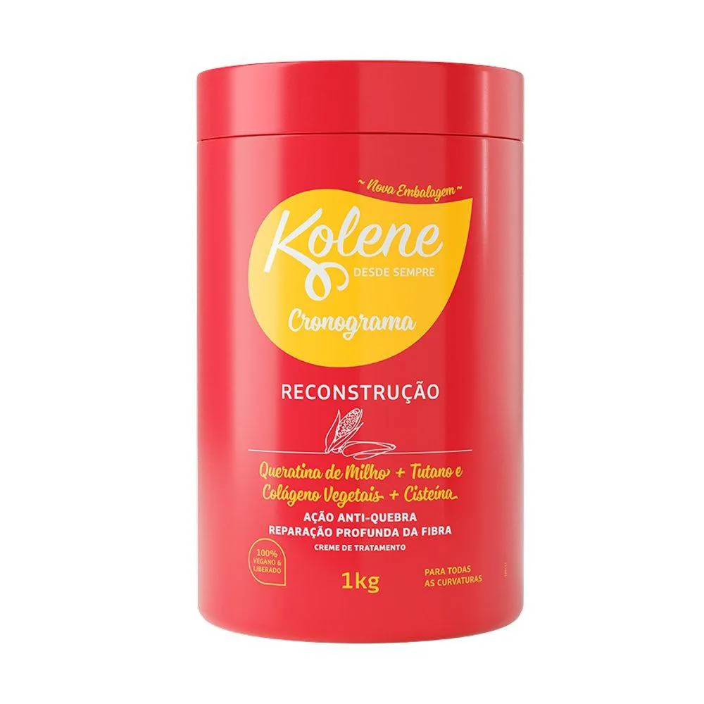 O Creme De Tratamento Kolene Cronograma Reconstrução 1Kg foi especialmente desenvolvido para reconstruir e fortalecer os fios danificados por processos químicos. Possui fórmula enriquecida com colágeno, queratina e pantenol, que ajudam a fortalecer e reconstruir a fibra capilar, restaurando a saúde e a vitalidade dos cabelos. É indicado para todos os tipos de cabelo, especialmente aqueles que passaram por processos químicos, como coloração, alisamento e relaxamento. Além de cabelos que estão quebradiços, fracos e com pontas duplas.