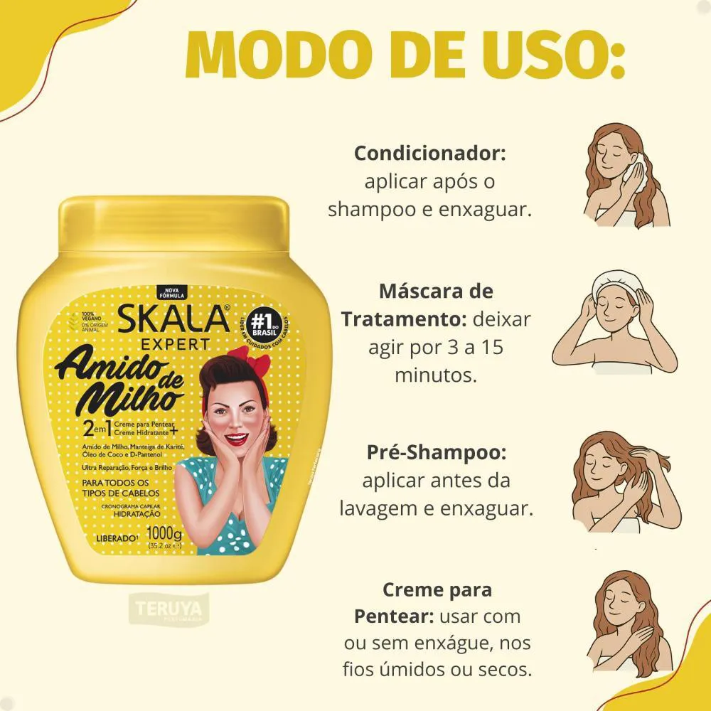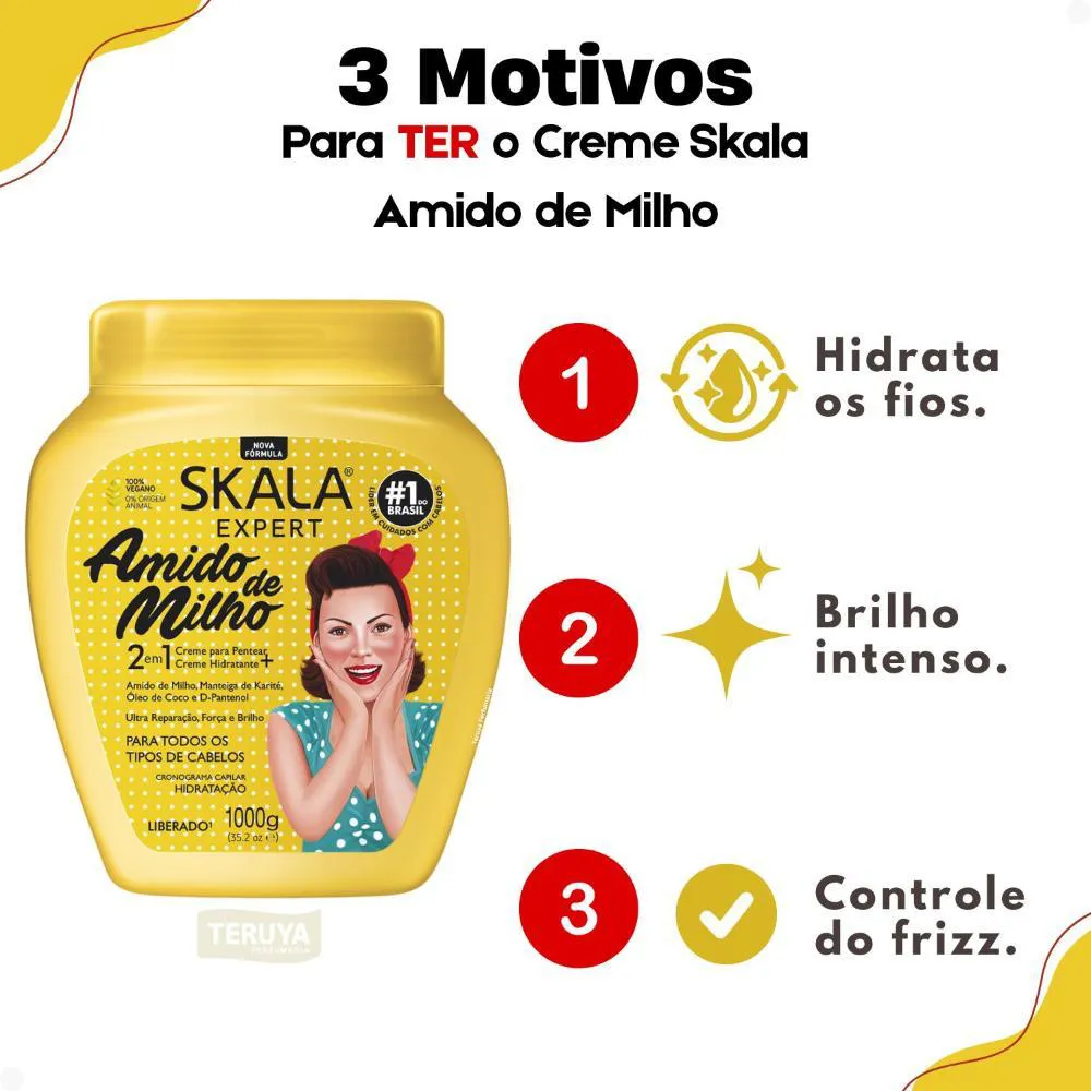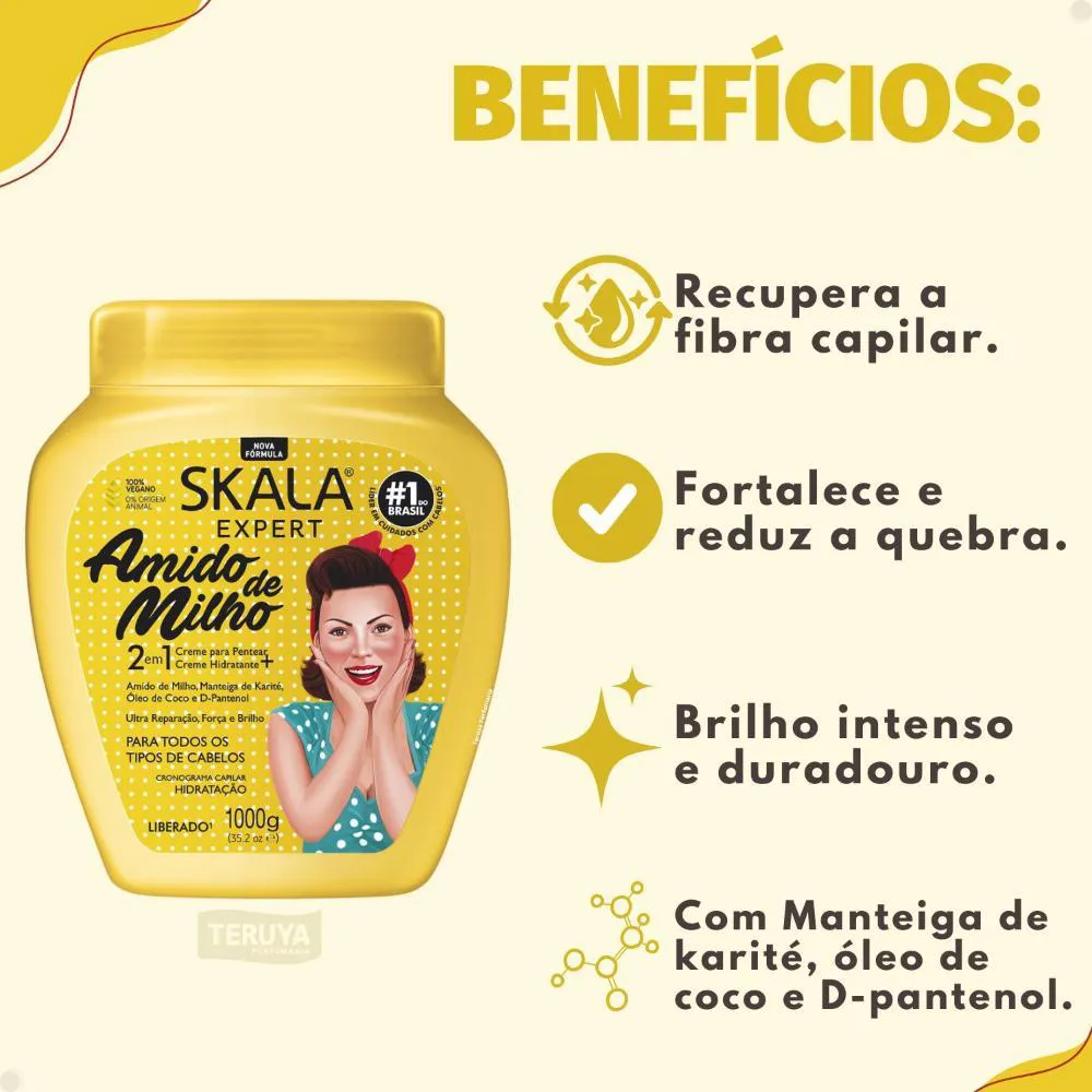 Creme de Tratamento Skala Expert Amido de Milho 1000g, o aliado perfeito para a sua rotina de cuidados capilares. Desenvolvido para atender às necessidades diárias de diversos tipos de