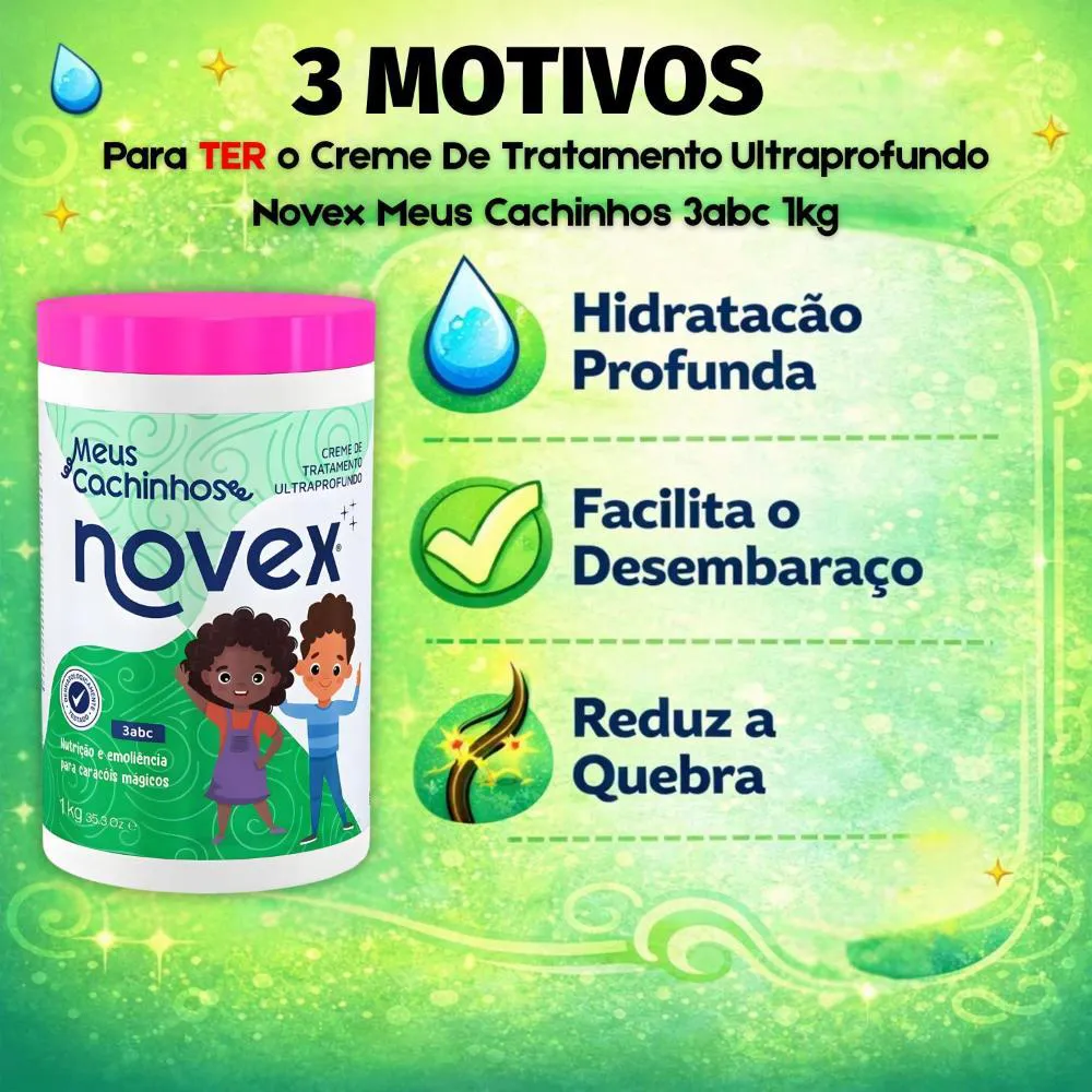 Apresentamos o Creme De Tratamento Ultraprofundo Novex Meus Cachinhos 1kg, um produto da marca NOVEX, especialmente desenvolvido para cuidar e realçar a beleza dos seus cachos. Se você busca um tratamento que proporcione hidratação intensa, definição e controle do frizz, este creme é a solução ideal. Transforme seus cachos, deixando-os mais saudáveis, definidos e cheios de vida com o poder nutritivo de Novex. Ideal para quem ama exibir cachos impecáveis e radiantes. Uso Indicado para crianças a partir de 3 anos de idade, sob supervisão de um adulto.Este creme oferece um tratamento ultraprofundo, ideal para os cabelos cacheados, proporcionando resultados visíveis desde a primeira aplicação. Com 1kg de conteúdo, o Creme De Tratamento Ultraprofundo Novex Meus Cachinhos garante um cuidado prolongado e eficaz para seus cachos.Benefícios Principais