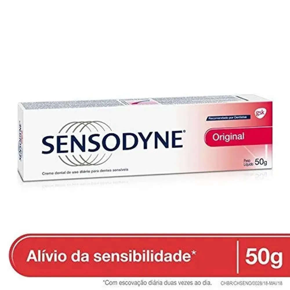 O creme dental Sensodyne Original apresenta uma formulação especialmente desenvolvida para aliviar os dentes sensíveis, acalmando os nervos na raiz do dente e reduzindo o desconforto associado