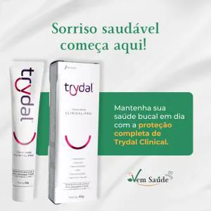 - Tubete com 50g do Creme Dental Trydal Clinical-Pro, seletamente formulado para uso diário