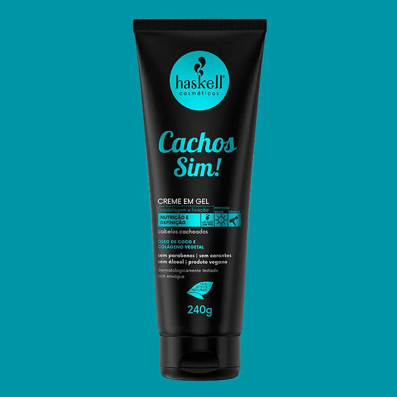 Creme em Gel Cachos Sim! 240g - Haskell Indicação: cabelos cacheados Promove definição e fixação para cabelos cacheados. Ideal para fixar penteados e remodelar no day after. Desenvolvida para nutrir e fortalecer os fios, valorizando a beleza dos cachos; A linha é livre de sulfatos, petrolatos e parabenos; Sua fórmula conta com óleo de coco e colágeno, que promovem hidratação e definição aso cabelos cacheados. Direção olfativa: floral, fruity, gourmand,oriental Especificações: sem parabenos| sem corantes proteção térmica | proteção solar sem enxágue low poo Modo de usar: nos cabelos secos ou úmidos, aplique uma quantidade suficiente do Creme em Gel na palma das mãos. Espalhe uniformemente pela extensão dos fios e modele como desejar. Para mais definição, utilize um pente de dentes largos ou faça fitagem. Sem enxágue. Potencialize os resultados utilizando toda a linha Cachos Sim!. Imagens Meramente Ilustrativas. Todas as Informações Divulgadas são de Responsabilidade Exclusiva do Fabricante/fornecedor.