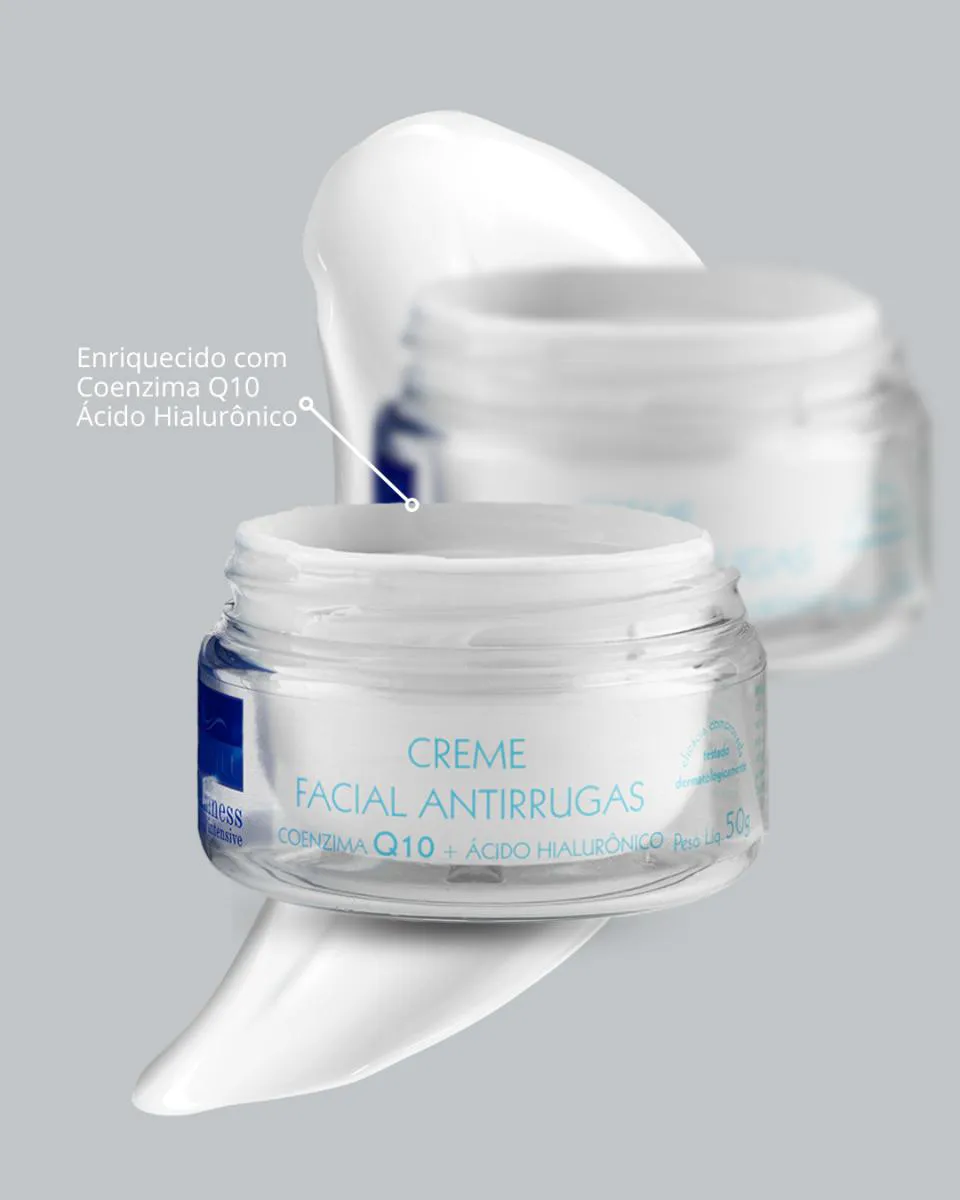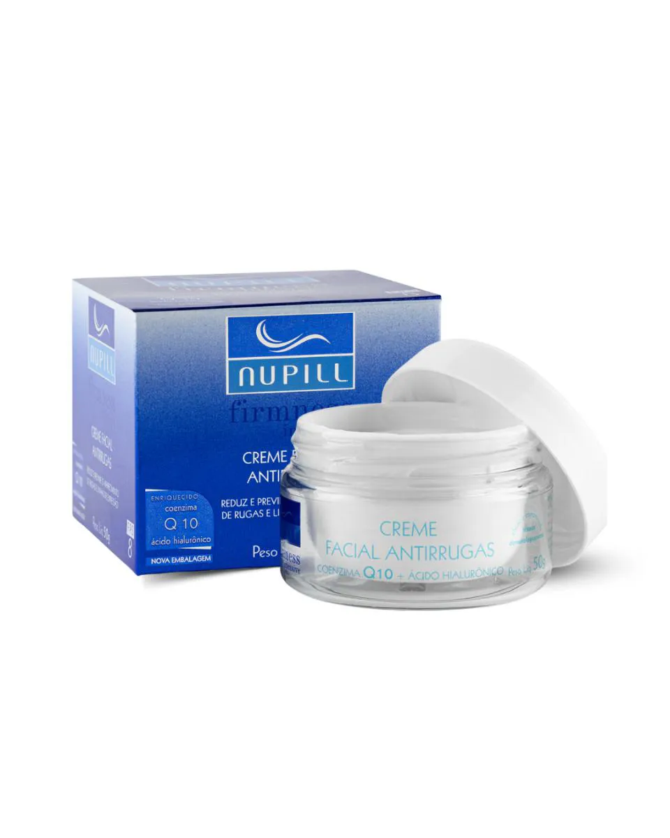 O Creme facial antirrugas Nupill Q10 + Ácido Hialurônico atua na prevenção e combate de linhas de expressão já adquiridas de intensidade leve à moderada.