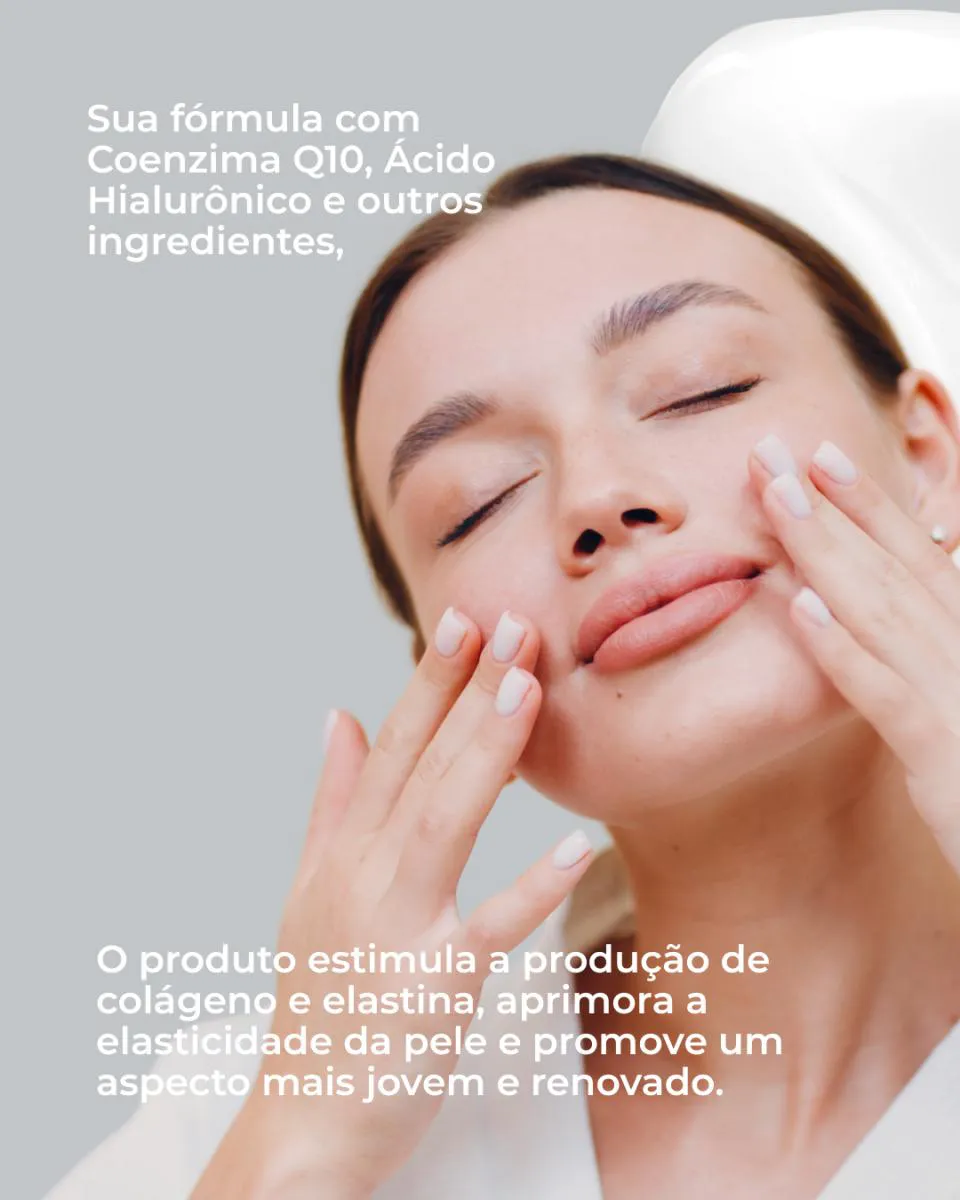 · Enriquecido com Coenzima Q10 - coenzima com alto poder antioxidante, que estimula a produção de colágeno e elastina da pele, garantindo mais firmeza e elasticidade retardando assim o aparecimento de rugas e tratando as rugas já adquiridas.