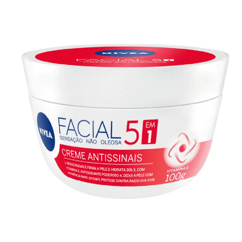 Modo de usar: Com a pele limpa e seca, aplique o Creme Facial Nivea Antissinais sobre todo o rosto, massageando suavemente em movimentos circulares até a completa absorção do produto.