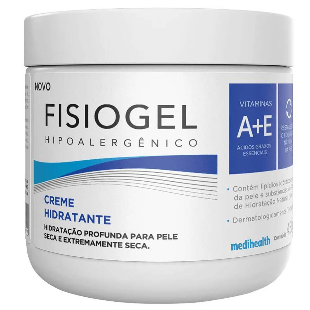 Fisiogel Creme hidratante é um hidratante corporal indicado para pele seca e extremamente seca . Formulado à base de lipídios idênticos aos da pele e substâncias do Fator de Hidratação Natural (NMF), além de emolientes, umectantes e vitaminas A e E.