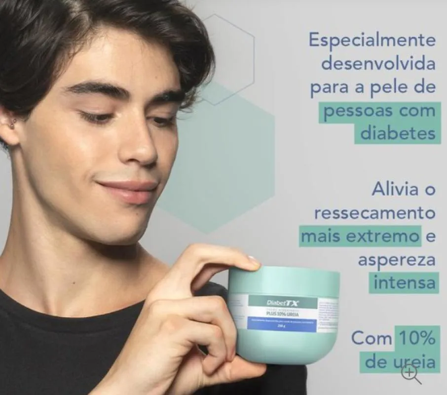 - Uso exclusivo para pessoas com diabetes, com atenção especial para hidratação de mãos e pés.