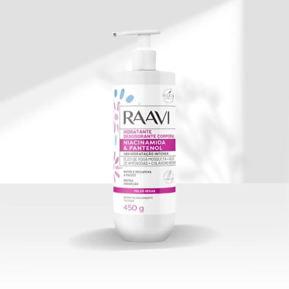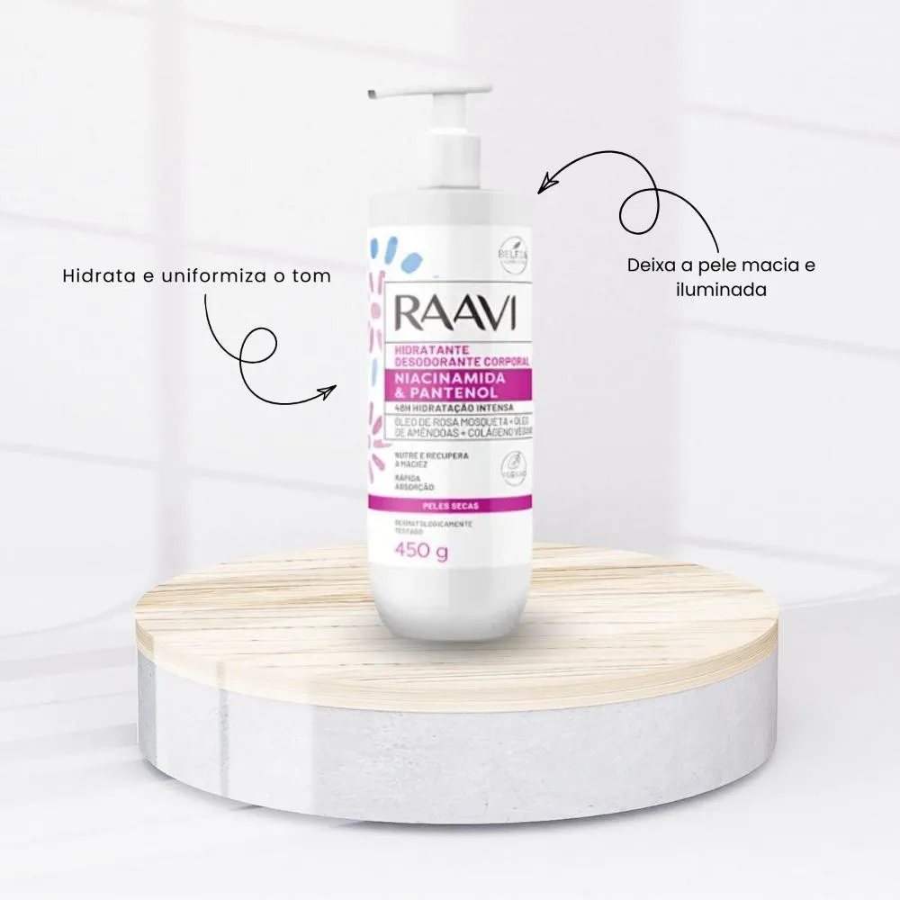 01 – Creme Hidratante Raavi Niacinamida Uniformização 450g Para melhores resultados:sabonete Líquido Raavi