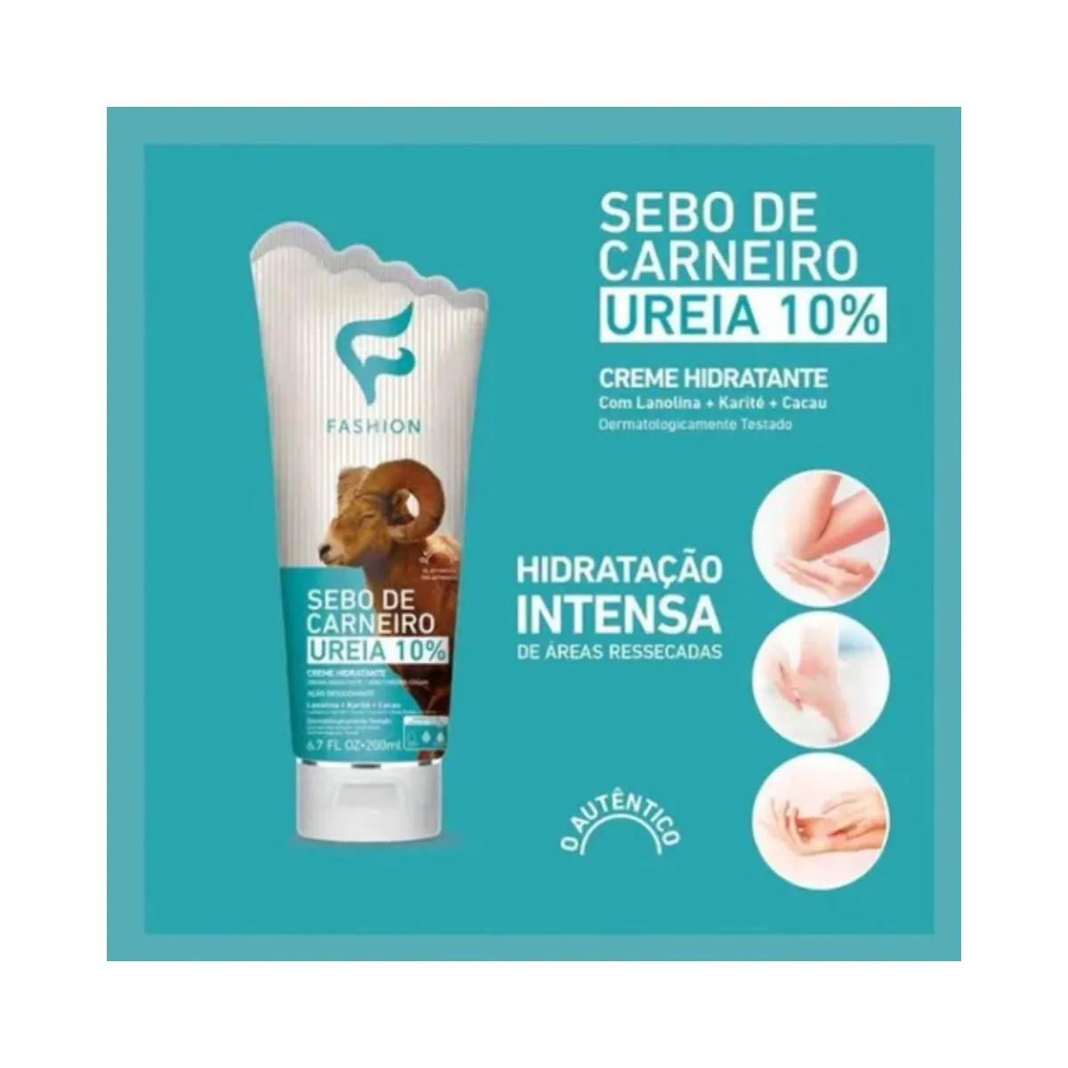 O Creme Hidratante Sebo de Carneiro Ureia 10% Fashion foi desenvolvido para hidratação profunda e duradoura das áreas mais ressecadas da pele. Além de Ureia, possui ativos importantes, tais como Lanolina, Manteiga de Karité e Cacau.