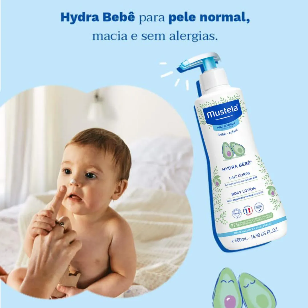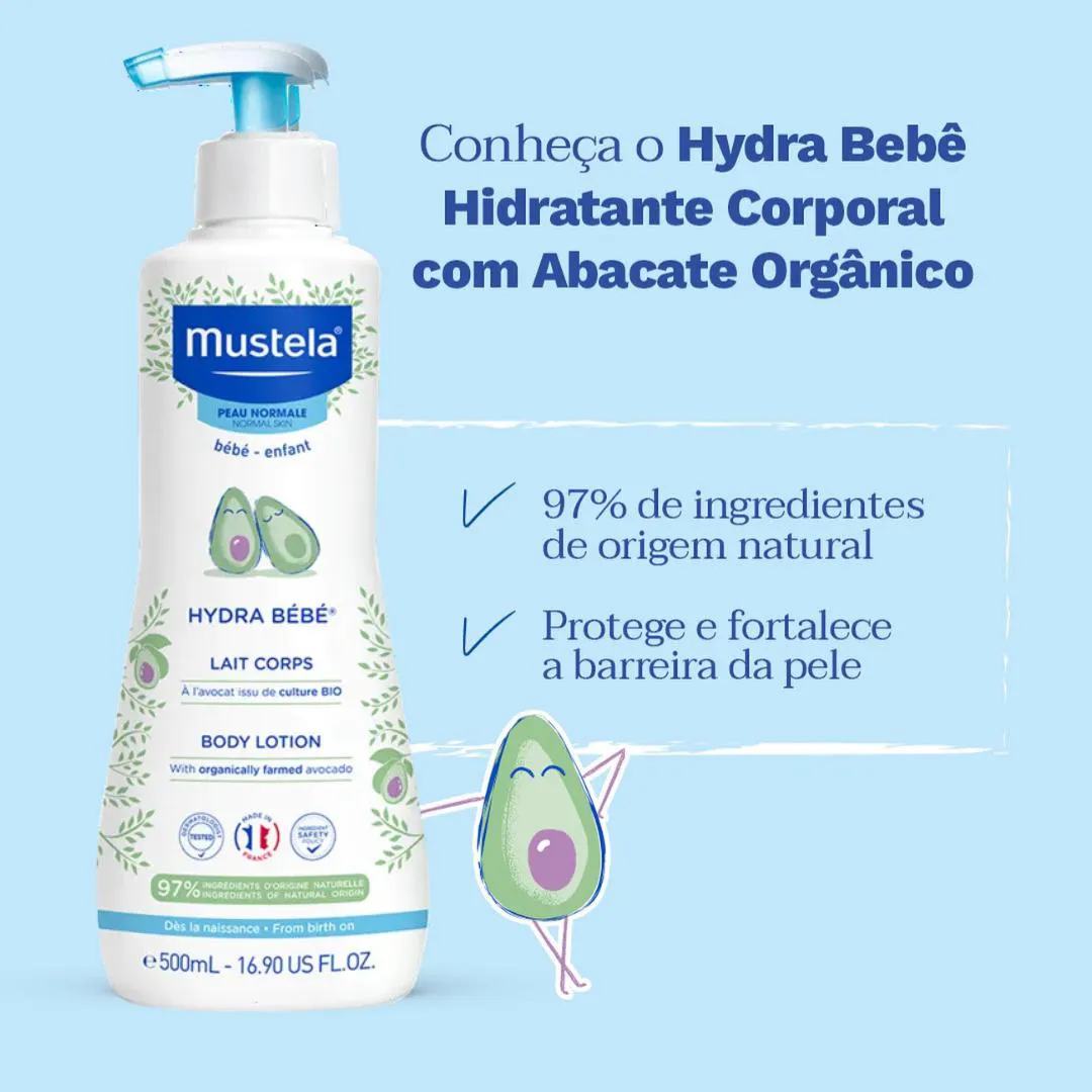 Hidrata a pele das crianças de maneira imediata e duradoura. Com 97% de ingredientes de origem natural e Abacate de cultivo orgânico, que protege e fortalece a barreira da pele. Pode ser usado diariamente, desde o nascimento. Fórmula com textura fluida e cheirinho delicado de Mustela.