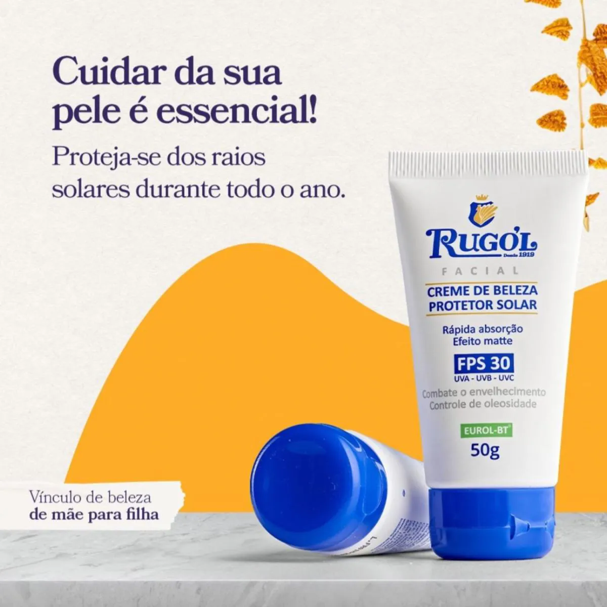 O Creme Facial Rugol Multifuncional hidrata, protege e controla a oleosidade em um único produto. Com FPS30, oferece proteção contra raios UVA e UVB, ajudando a prevenir o envelhecimento precoce. Sua textura leve e de rápida absorção garante toque seco e acabamento matte, ideal para uso diário em todos os tipos de pele, especialmente mistas e oleosas.