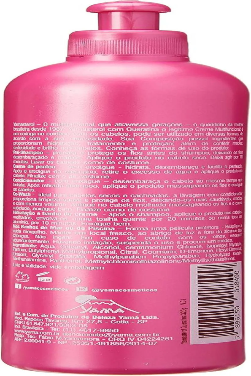 Creme Multifuncional Yamasterol Com Queratina 320gCom uma fórmula poderosa e versátil, o Yamasterol é o queridinho de todas as épocas, entregando brilho intenso, maciez irresistível, sedosidade de dar inveja e hidratação profunda aos fios.Como usar? Sua beleza está na versatilidade: