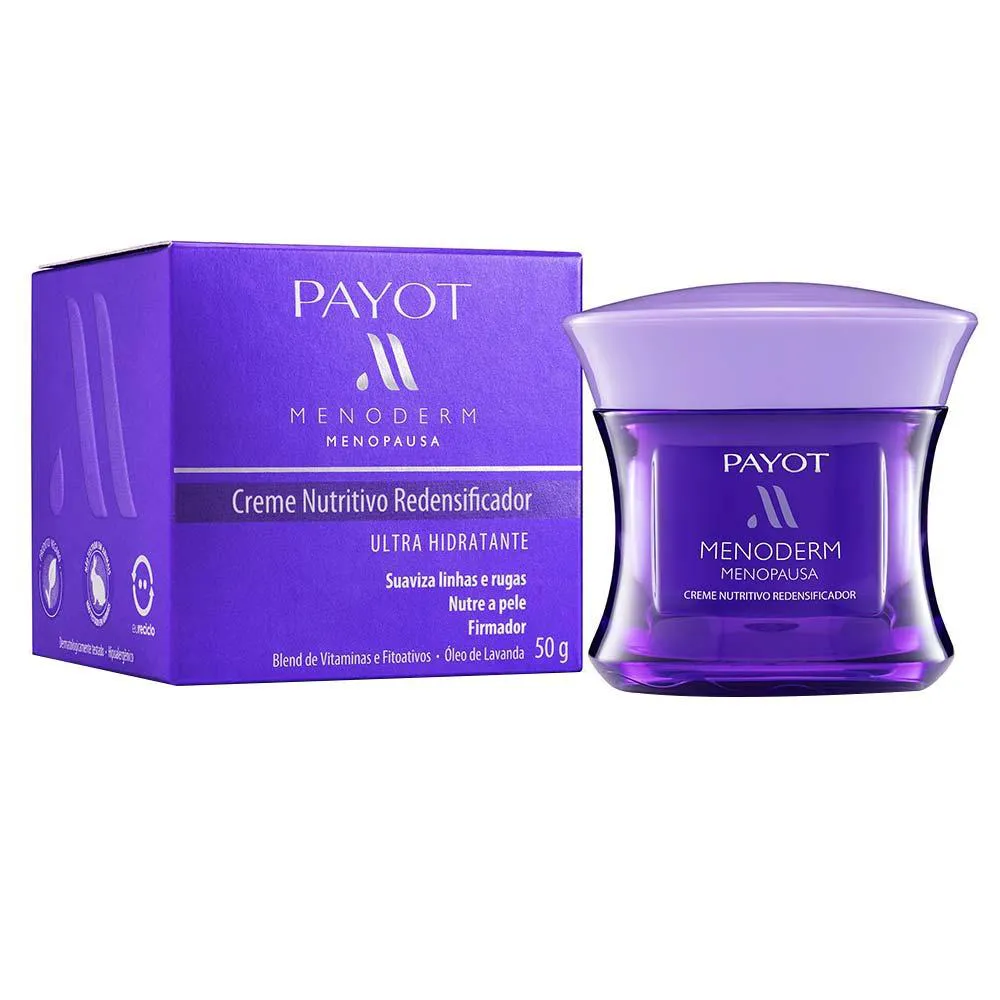 O Creme Nutritivo Redensificador Menoderm Payot foi especialmente desenvolvido para suavizar os efeitos que as mudanças hormonais causam na pele. Combate o ressecamento, a perda de firmeza e elasticidade.
