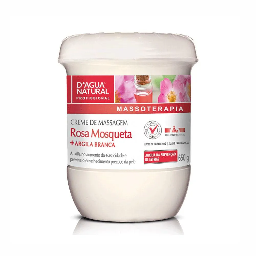 CREME PARA MASSAGEM D'AGUA NATURAL ROSA MOSQUETA E ARGILA BRANCA 650G