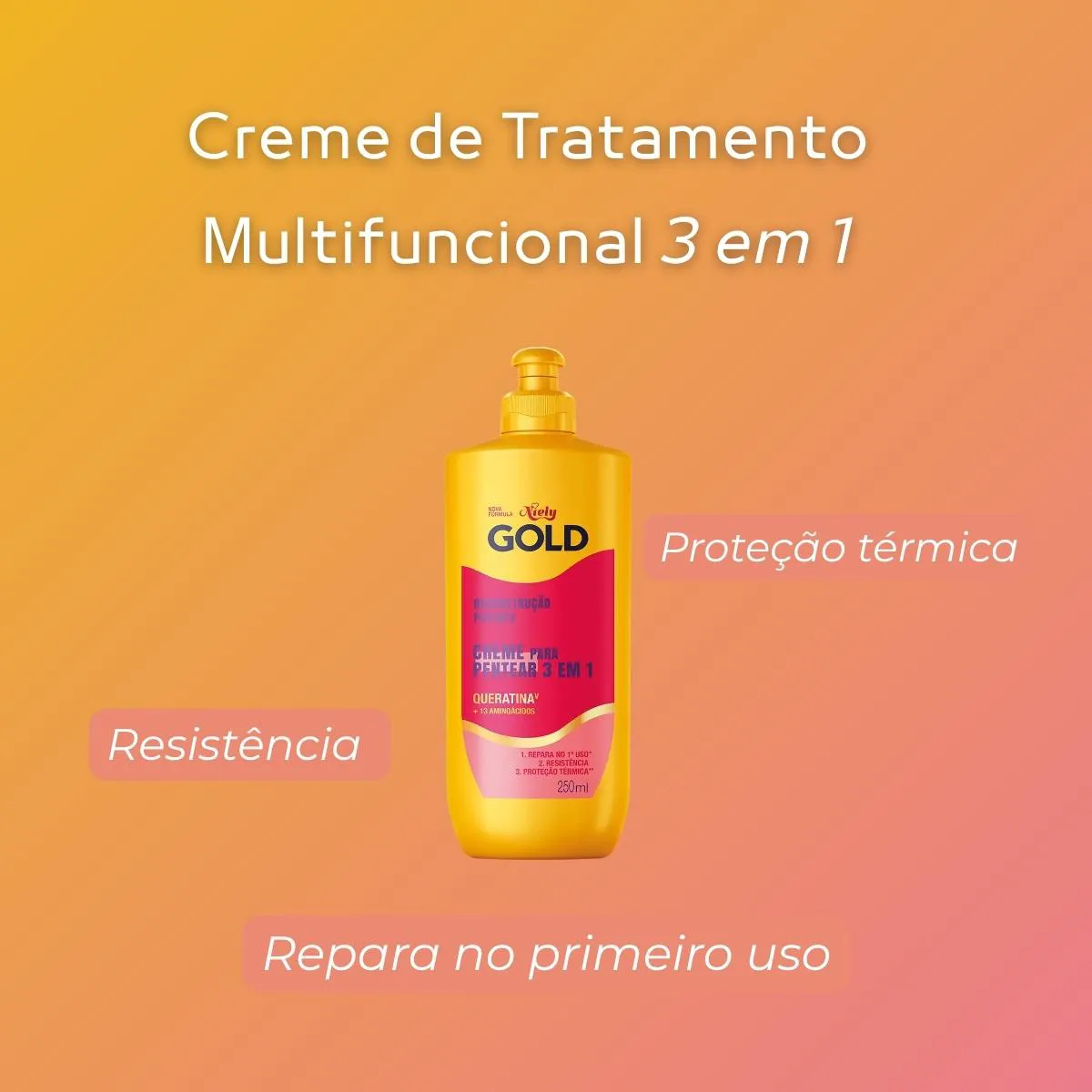 Creme para Pentear 3 em 1 Niely Gold Reconstrução Potente 250Ml