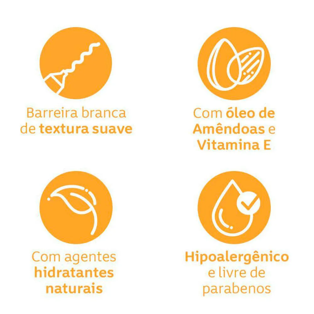 - Protege contra assaduras formando uma barreira contra germes e outros agressores