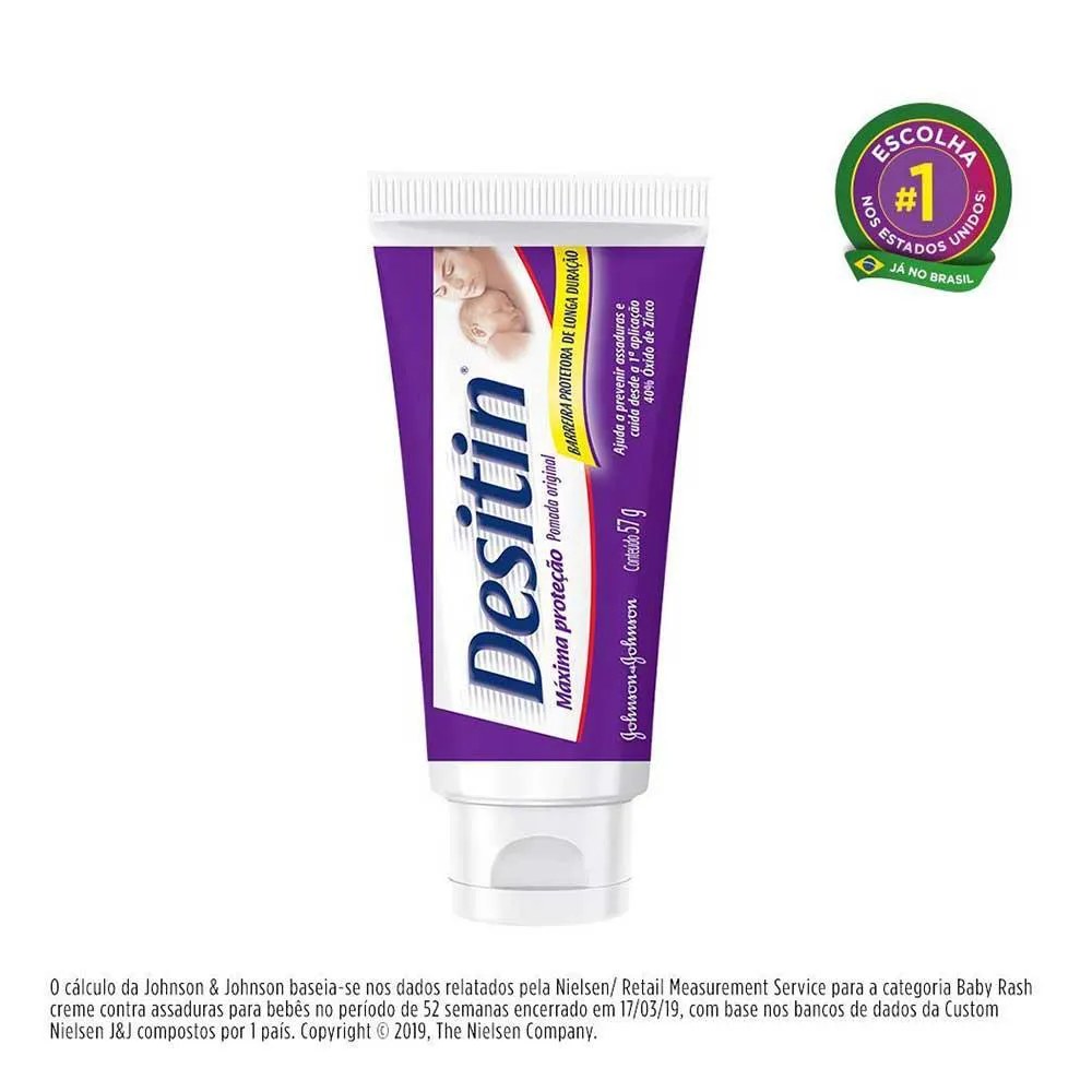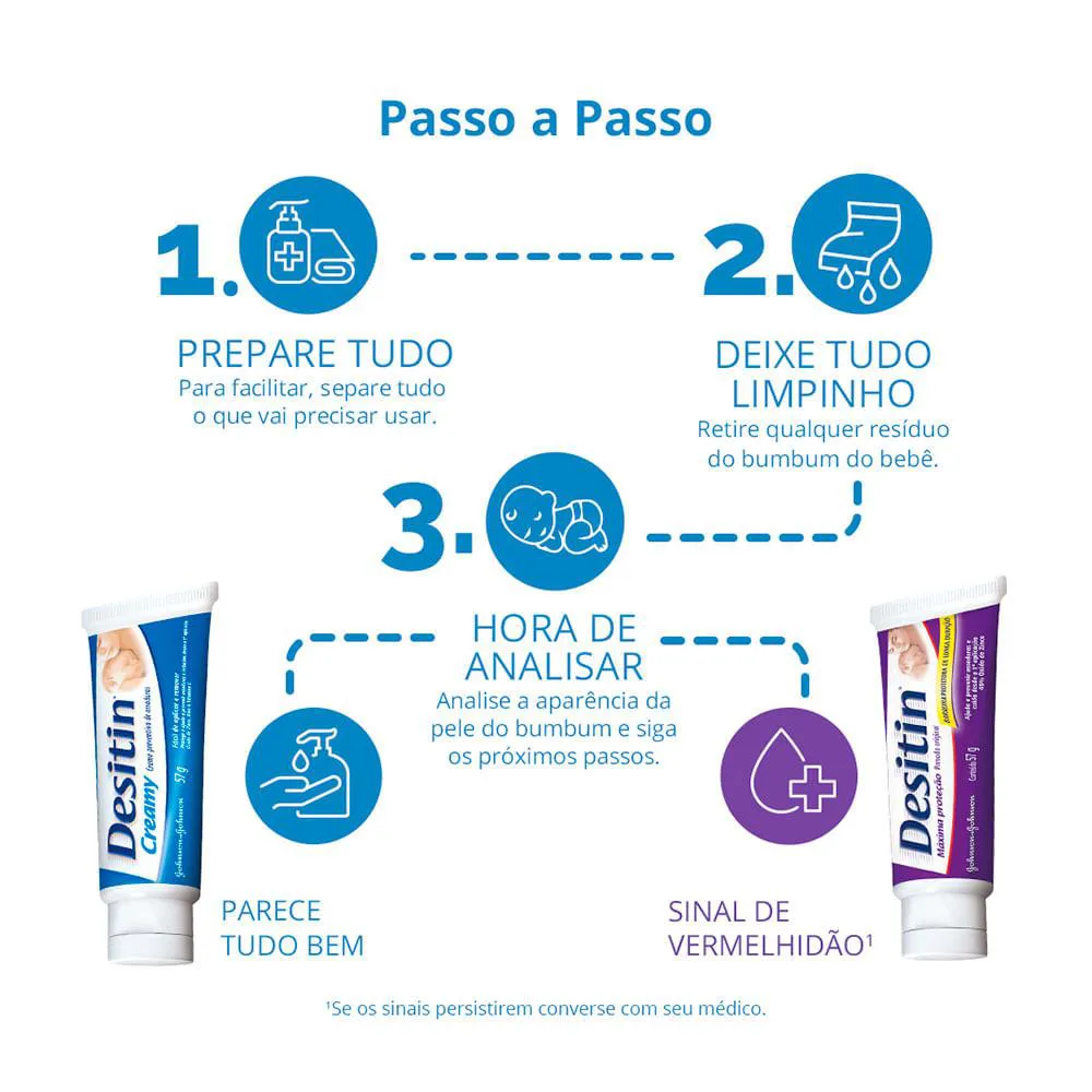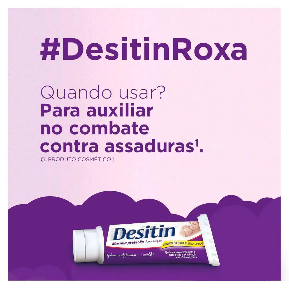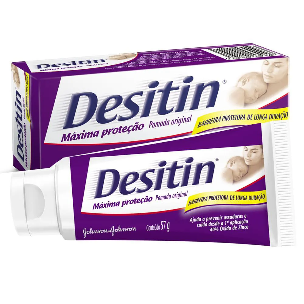 Desitin Original Máxima Duração, ou Desitin Roxo, é uma pomada que forma uma camada protetora de longa duração na pele do bebê, ajudando a prevenir irritações e assaduras. Sua fórmula contém 40% de Óxido de Zinco, ingrediente que ajuda a prevenir irritações e assaduras na área da fralda. Produto Hipoalergênico*.