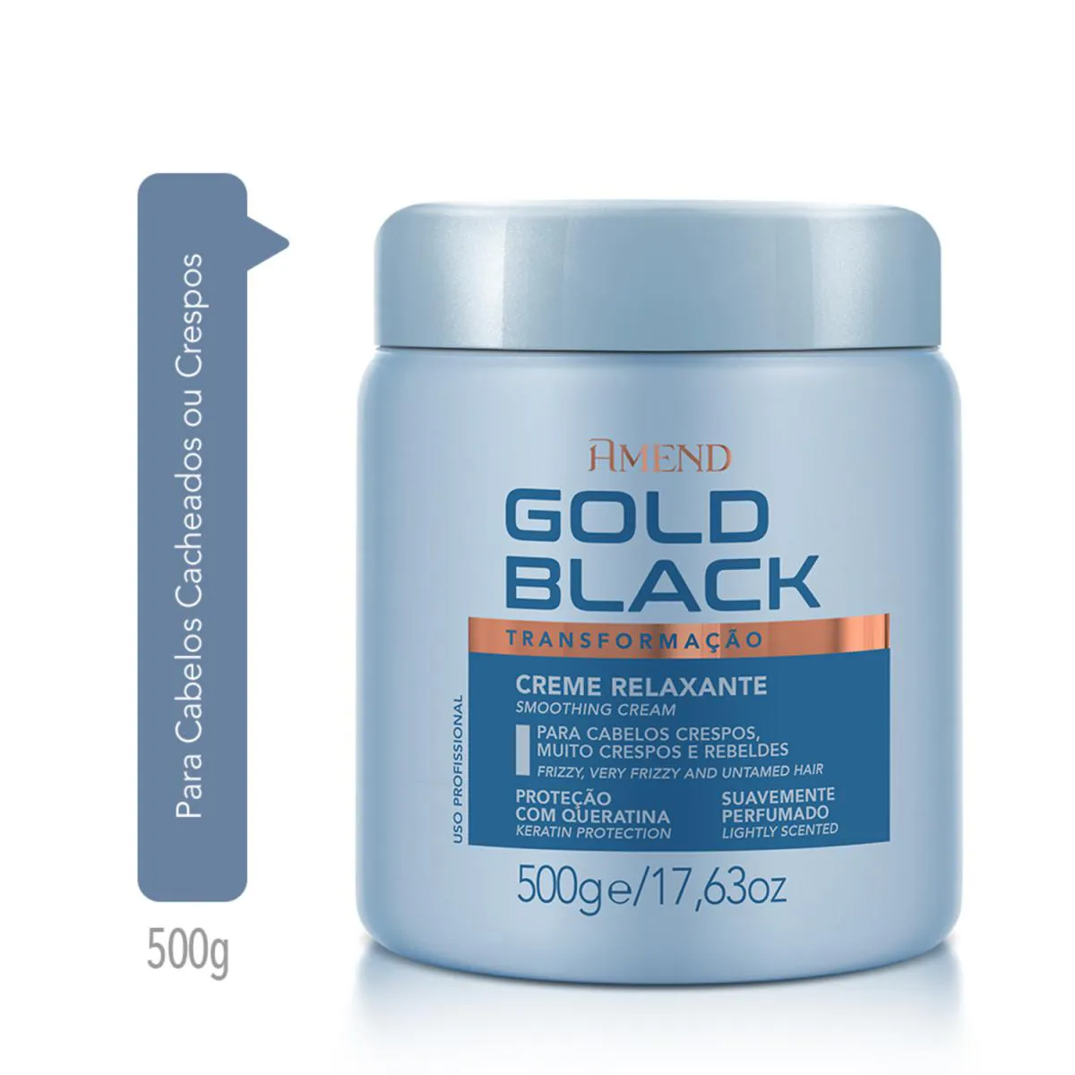 O Creme Relaxante Amend Gold Black é ideal para quem possui cabelos crespos, muito crespos ou rebeldes e deseja fios mais alinhados, com brilho, maciez e balanço natural. Sua fórmula contém Queratina Hidrolisada e Quaternizada, que penetra na fibra capilar, hidrata profundamente e oferece proteção durante o processo de relaxamento. O resultado são cabelos visivelmente mais saudáveis, com toque sedoso e aparência revitalizada. Principais Benefícios: