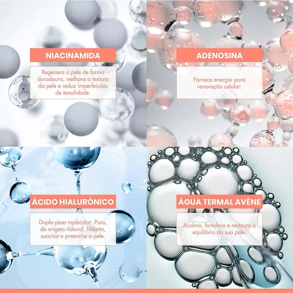 - Contém ácido hialurônico e niacinamida.