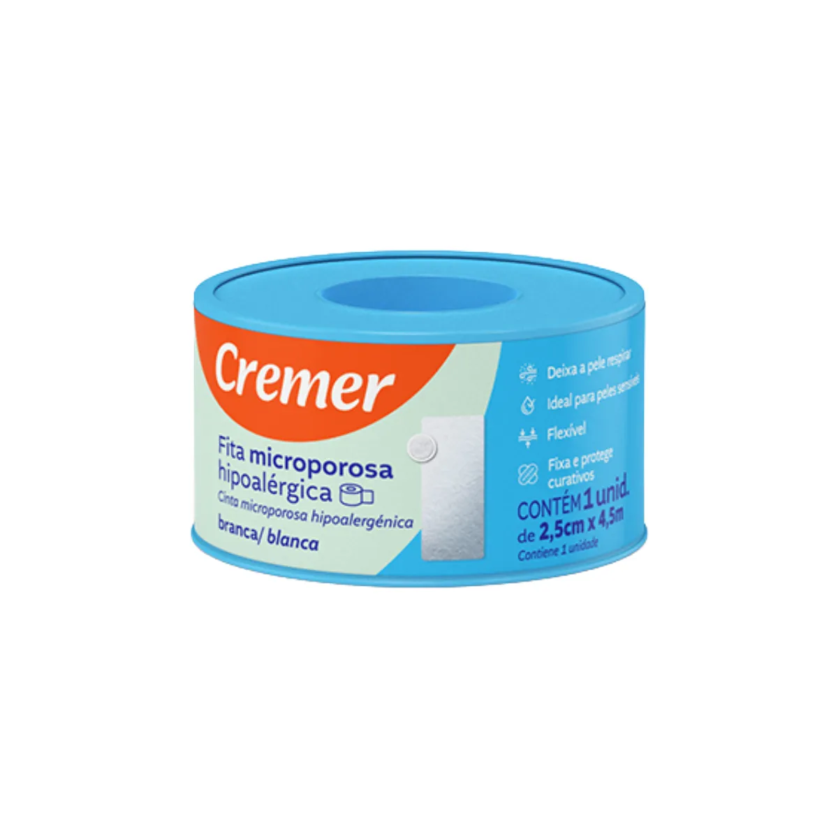 Fita Microporosa Cremer Branca para Peles Sensíveis 2,5CM X 4,5M 1unidade