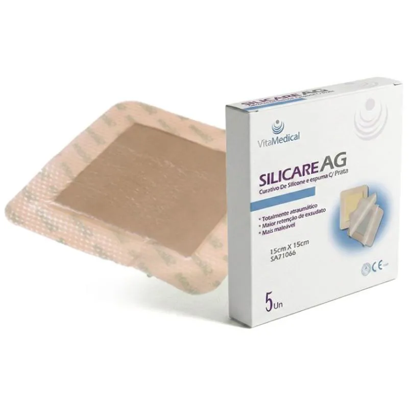 Descrição: O SILICARE AG é um curativo de espuma tridimensional de poliuretano, revestido por uma película adesiva de silicone hipoalergênico e uma película externa semipermeável. É uma barreira antibacteriana/ antiviral e hidrofóbica. Absorve e retém eficazmente todo o exsudato oriundo da ferida, promovendo a umidificação necessária para o processo de cicatrização e a diminuição do odor liberado pela lesão. Aderência segura e eficaz que permite trocas suaves sem causar lesão ao tecido, propiciando a realização o menos dolorosa possível do procedimento. Pode ser reposicionado sem perder as propriedades aderentes. Benefícios: REMOÇÃO INDOLOR • Minimiza a dor e lesões cutâneas durante a troca da cobertura. HIPOALERGÊNICO • Baixo risco de alergia ou irritação cutânea. DIVERSOS MODELOS E TAMANHOS • Ajuste seguro para todas as feridas. BARREIRA ANTIBACTERIANA E ANTIVIRAL • Formulação para barreira mecânica contra entrada de microrganismos na ferida. ABSORÇÃO SEGURA • Absorve e bloqueia o exsudato em sua estrutura, garantindo condições ideais de cicatrização. CAMADA EXTERNA HIDROFÓBICA • Material à prova de água. Diferenciais: SEGURANÇA NA APLICAÇÃO • Aplicação fácil e asséptica, permitindo mais segurança na manipulação, aplicação e retirada. MELHOR ABSORÇÃO • Utilizado para feridas com pouco, moderado ou intenso exsudato. AÇÃO ANTIBACTERIANA • Formulação de espuma impregnada com prata para combate às bactérias. Tamanho: 10cm X 10cm.