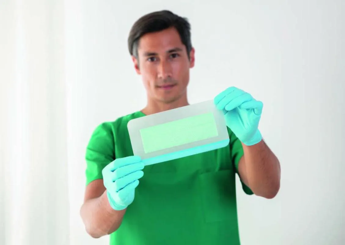 Filme transparente permite observar a ferida sem retirar o curativo.