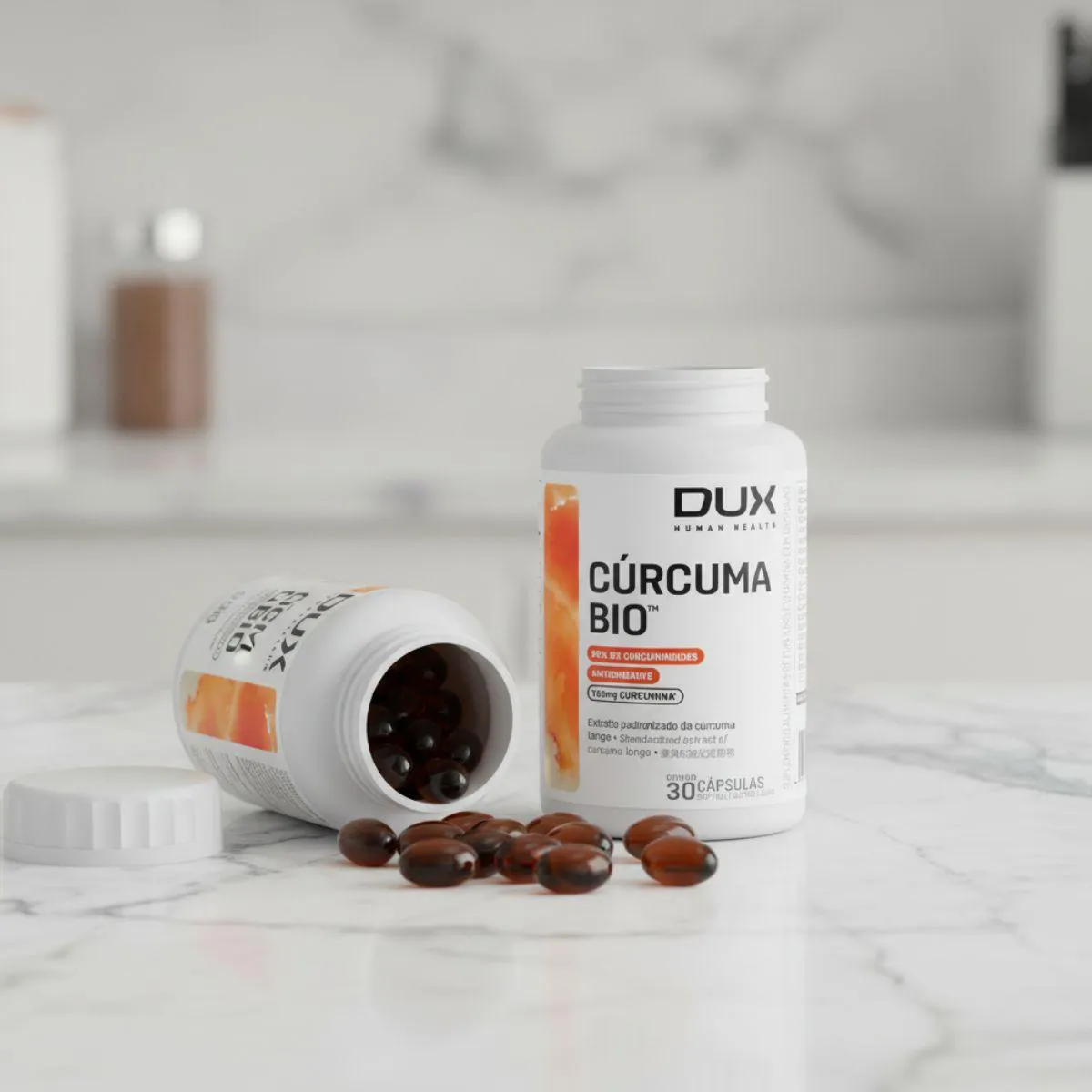 O Curcuma Bio Curcumin é um suplemento em cápsulas com extrato padronizado de cúrcuma longa, contendo curcuminoides e extrato de pimenta-preta para melhorar a absorção. Trata-se de um produto natural, sem glúten, lactose ou corantes artificiais, composto por 30 cápsulas para um mês de suplementação.