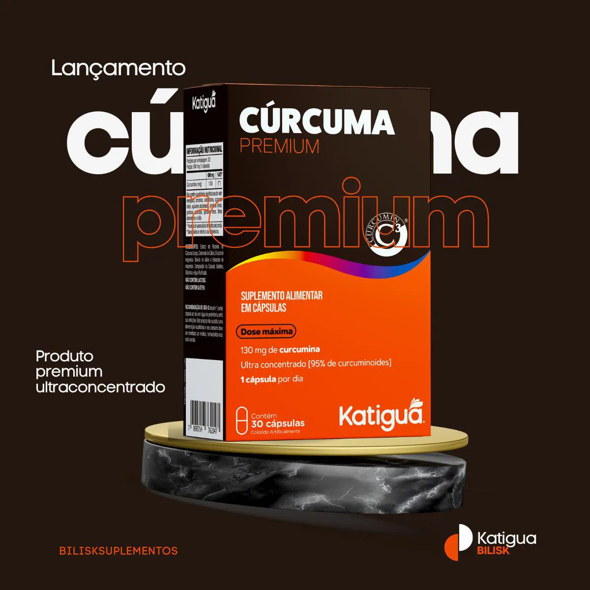 Suplemento alimentar concentrado em cúrcuma (Curcuma longa), planta reconhecida por seus compostos bioativos antioxidantes.Benefícios: