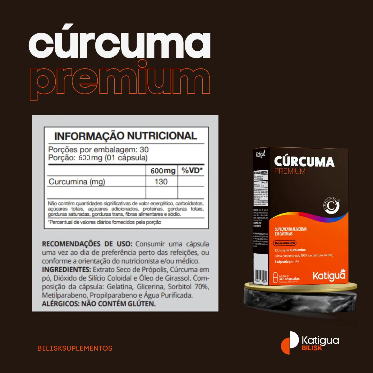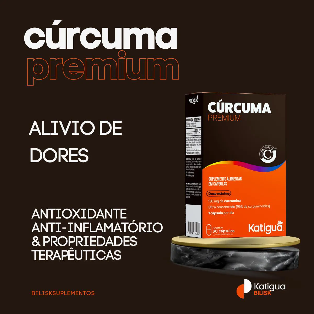 - Dose concentrada de extrato de cúrcuma;