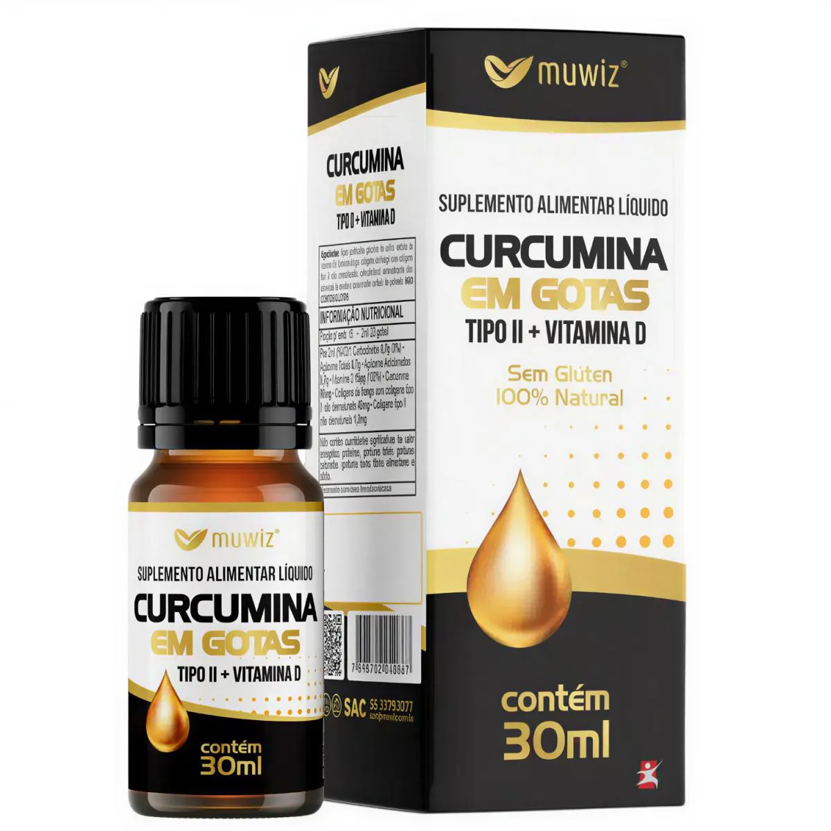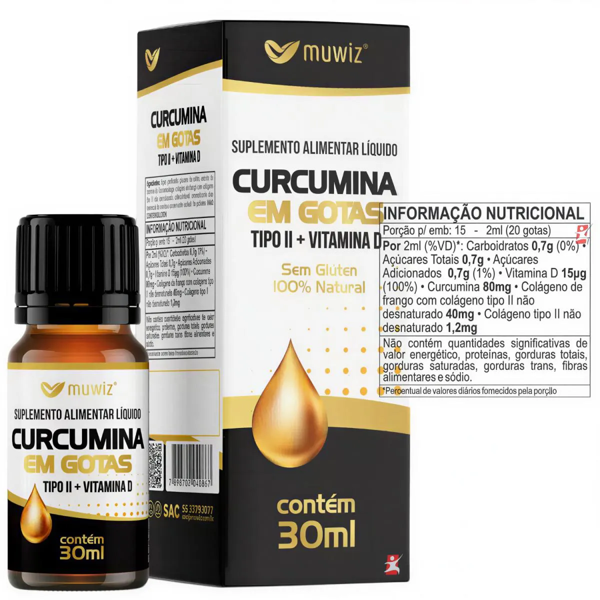 Curcumina Curcuma + Colágeno Tipo 2 + Vitamina D em Gotas 30 Ml - Muwiz