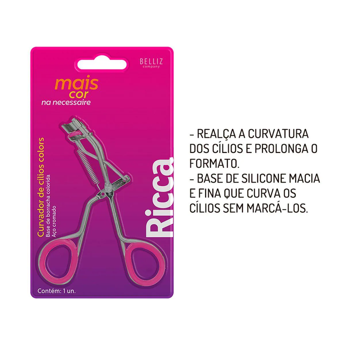 Diga olá a cílios curvados e poderosos com o Curvador de Cílios Colors Ricca. Ele proporciona um efeito natural e marcante em apenas alguns segundos, ideal para completar sua make!