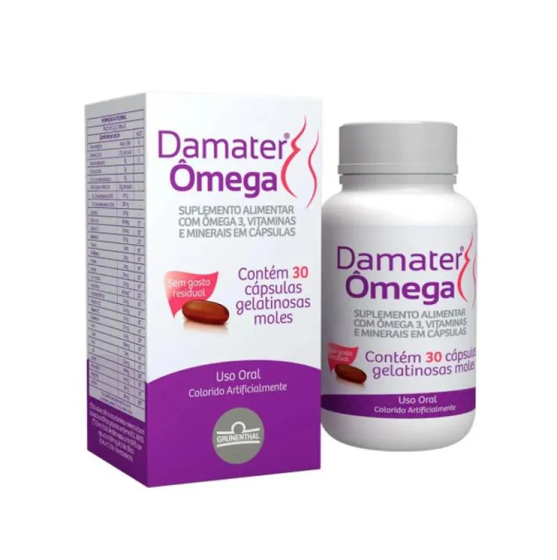 Damate Ômega é um suplemento alimentar fonte de Ômega 3, vitaminas e minerais essenciais para gestantes e lactantes.