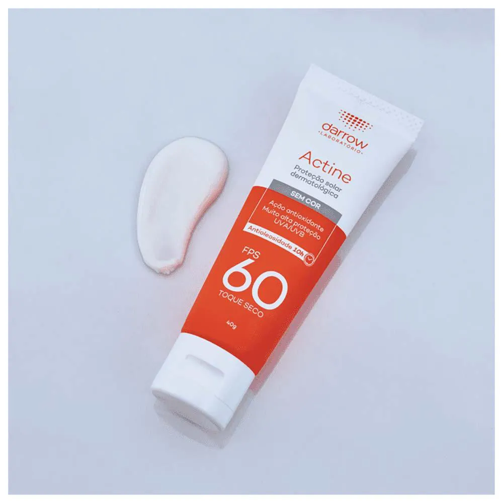 O Protetor Solar Darrow Actine FPS 60 possui muita alta proteção UVA/UVB com uma textura leve de absorção imediata e toque seco, proporcionando até 10h de proteção antioleosidade. Além disso, conta com ação antioxidante e previne a acne. Não obstrui os poros sendo ideal para peles oleosas com tendências acneicas.