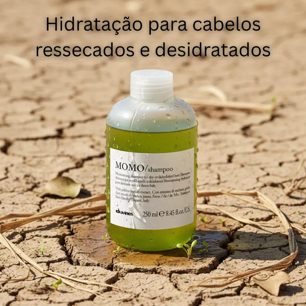 O Davines Essential Haircare Momo Shampoo é um shampoo suave com textura exclusiva em gel, desenvolvido especificamente para cabelos ressecados e desidratados. Sua fórmula gera uma espuma cremosa que limpa delicadamente os fios enquanto promove uma hidratação poderosa e de longa duração, devolvendo a vitalidade e a maciez ao cabelo danificado.Hidratação Vitalizante e Sustentável