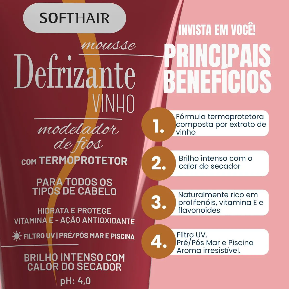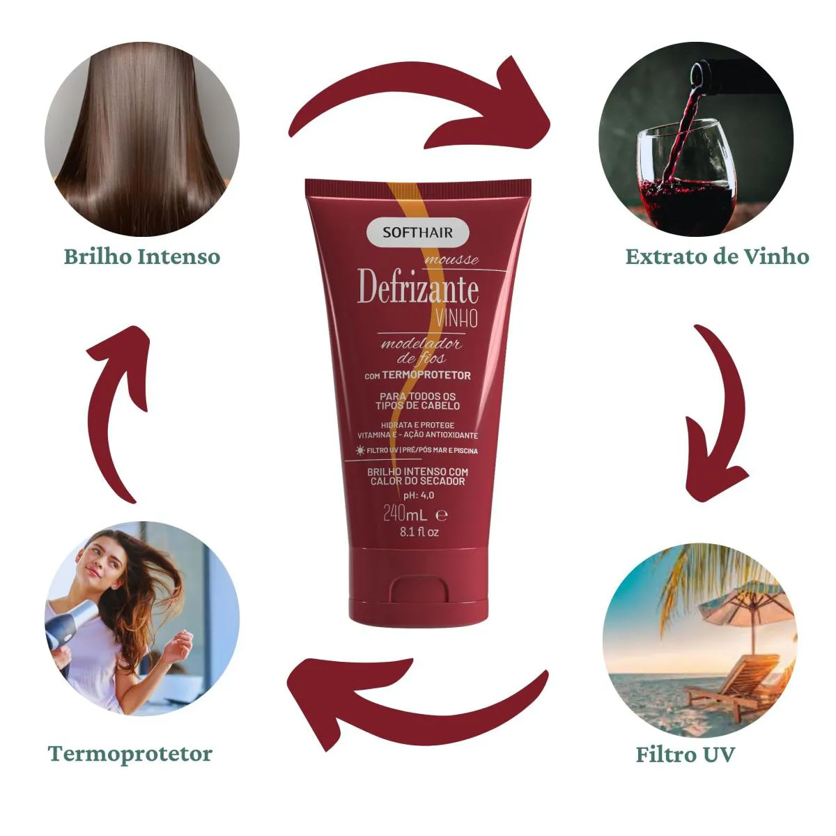 Defrizante Soft Hair Vinho Mousse Termo Protetor Capilar 240Ml