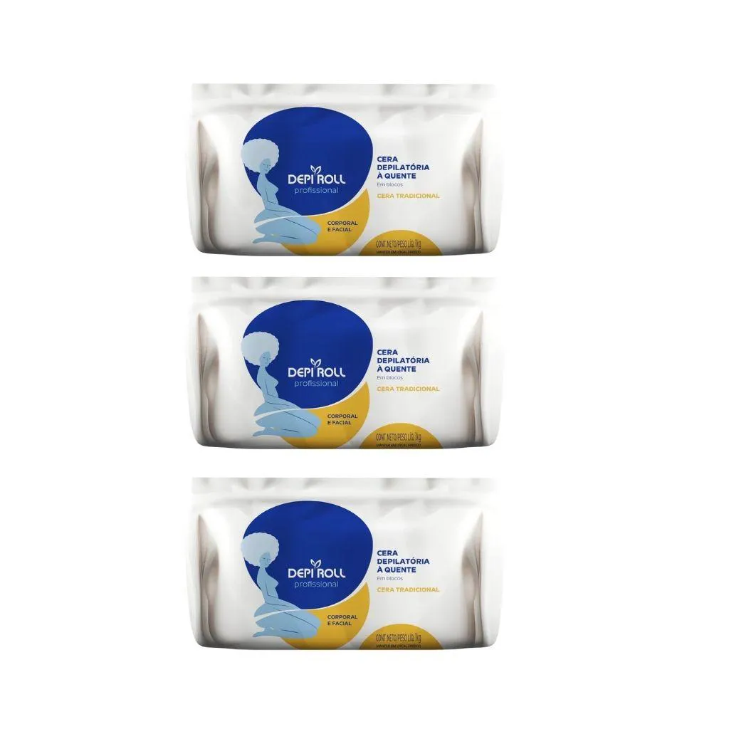 Depilatorio Depiroll Cera 1Kg Blocos Tradicional - Kit C/3Un