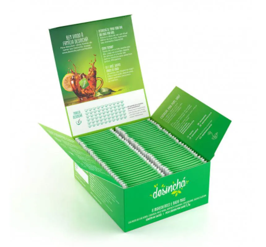 Desinchá é um chá criado para ser seu primeiro hábito saudável. Seja do seu dia ou da sua vida. Uma pesquisa recente apontou que 53% dos nossos clientes adotaram hábitos mais saudáveis inspirados pelo primeiro contato com Desinchá. Afinal, cuidar da saúde precisa ser saboroso para fazer parte da rotina. Sem precisar adicionar açúcar ou adoçante, o blend exclusivo com 8 ingredientes selecionados de Desinchá encanta os paladares mais exigentes, mesmo de quem não tem o chá como hábito. Permita-se sentir a infusão perfeita de tecnologia, natureza e sabor de Desinchá.