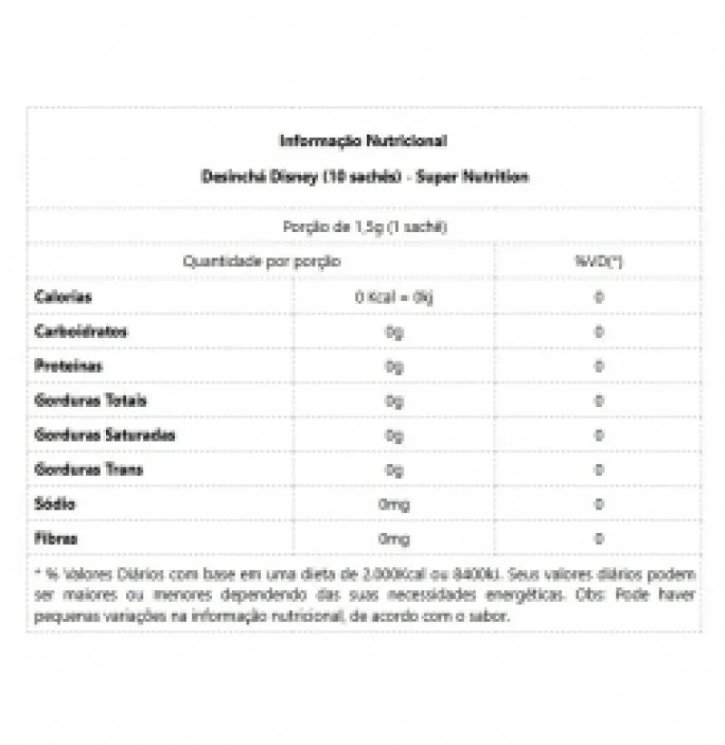 Desinchá Disney (10 sachês) Descubra o Desinchá Disney, uma infusão especial que combina ingredientes naturais em uma bebida saborosa e saudável. Inspirado pela magia das princesas Disney, cada um dos 10 sachês oferece uma mistura harmoniosa de sabores e aromas que encantam os sentidos. É a opção perfeita para quem busca uma bebida refrescante e nutritiva para o dia a dia. Benefícios: * Favorecem o bem-estar e a saúde geral;* Possuem propriedades digestivas, anti-inflamatórias e antioxidantes;* Contribuem para o equilíbrio do sistema digestivo;* Induzem calma e promovem o relaxamento.