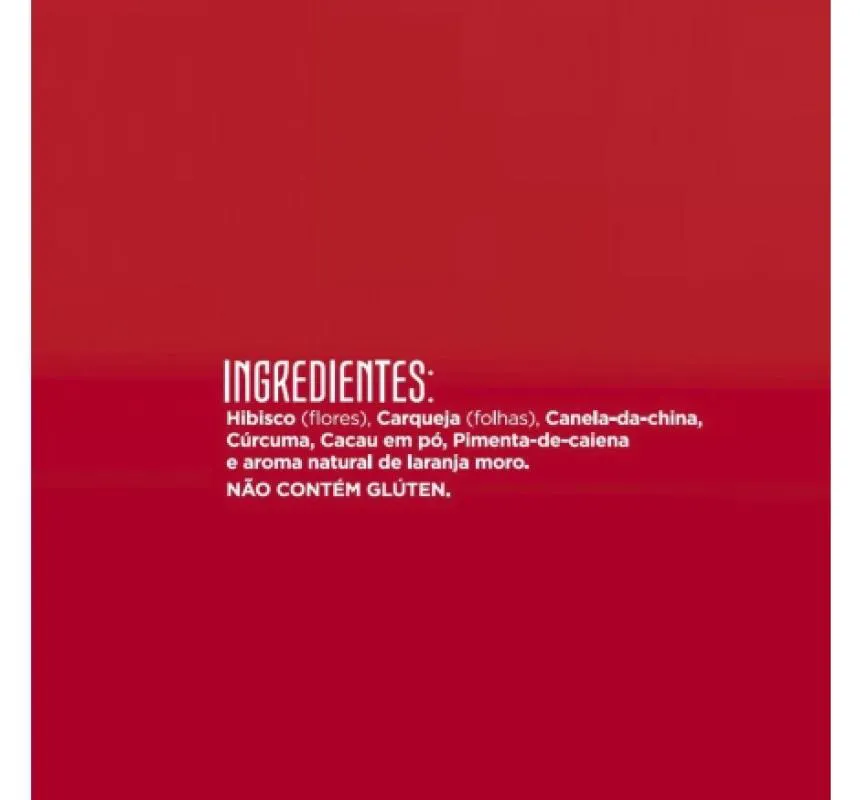 Chá com blend exclusivo de laranja moro, hibisco, carqueja, canela, cúrcuma e pimenta. Ingredientes cujas propriedades se complementam para serem aliados da sua rotina de bem-estar. São 30 sachês de cor e sabor vibrantes. O que é laranja moro? É uma laranja cultivada originalmente em áreas próximas da Itália, ao lado do mar mediterrâneo. Ela possui características e propriedades bem diferentes da laranja que conhecemos, como a polpa de cor vermelho rubi, que contém alto teor de antocianina. Estudos científicos apontaram evidências de vários benefícios da laranja moro para quem busca bem-estar e viver uma vida mais leve. Aliada à prática de exercícios físicos e hábitos saudáveis, a ingestão de laranja moro possui resultado mais satisfatório. Por que Desinchá Moro é único? ✅ Blend exclusivo ✅Fórmula Premium ✅ Potencializador de Resultados ✅ Produto Vegano ✅ Zero Calorias ✅ Sem Açúcar ✅ sem lactose ✅ Não contém glúten ✅ Sem substâncias alergênicas