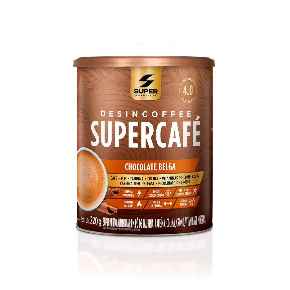 Desincoffee Supercafé é uma bebida revolucionária à base de café com mais ingredientes incríveis, totalmente diferente de tudo que você já provou. Combina ingredientes premium em uma formulação exclusiva. Possui 100mg de cafeína por porção que auxilia no aumento do estado de alerta e na melhora da concentração. Permite fazer o que te move, e ir além. Tudo isso com muito, muito sabor e baixo em calorias. Como você nunca viu em um café bulletproof. Experimente o café com chocolate que vai despertar o melhor de suas várias versões.
