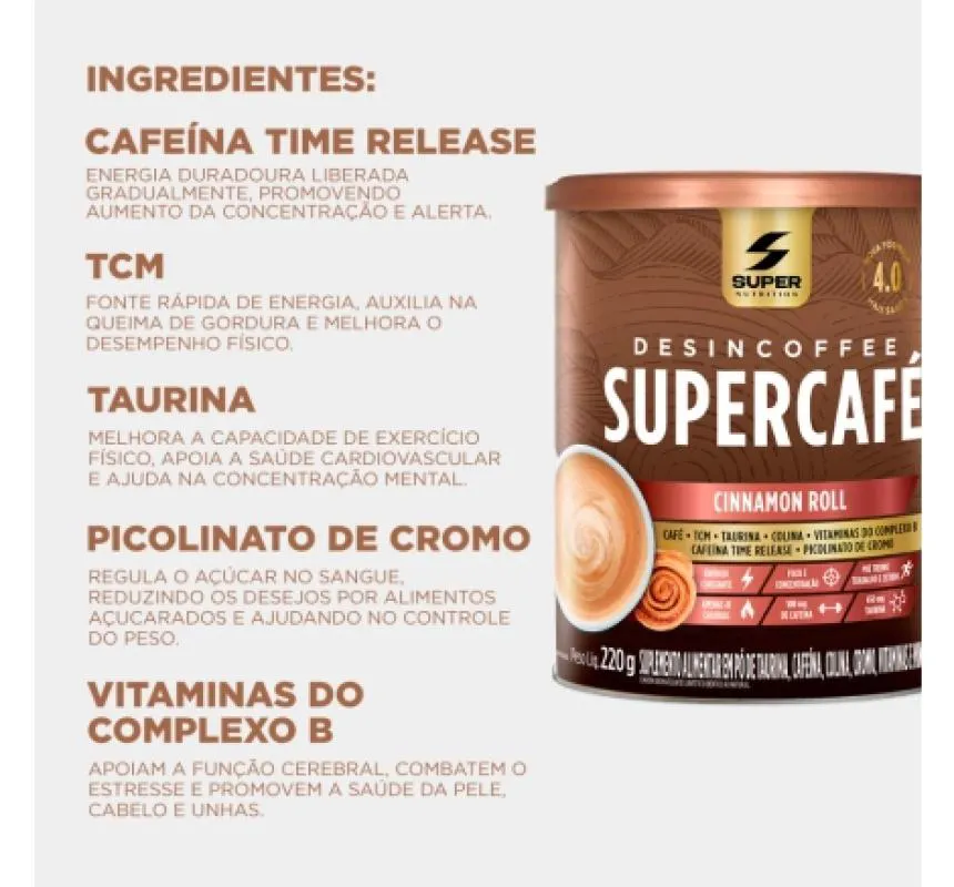 Desincoffee Supercafé é uma bebida revolucionária à base de café com mais ingredientes incríveis, totalmente diferente de tudo que você já provou. Combina ingredientes premium em uma formulação exclusiva. Possui 100mg de cafeína por porção que auxilia no aumento do estado de alerta e na melhora da concentração. Permite fazer o que te move, e ir além. Tudo isso com muito, muito sabor e baixo em calorias. Como você nunca viu em um café bulletproof. Experimente o café com chocolate que vai despertar o melhor de suas várias versões.