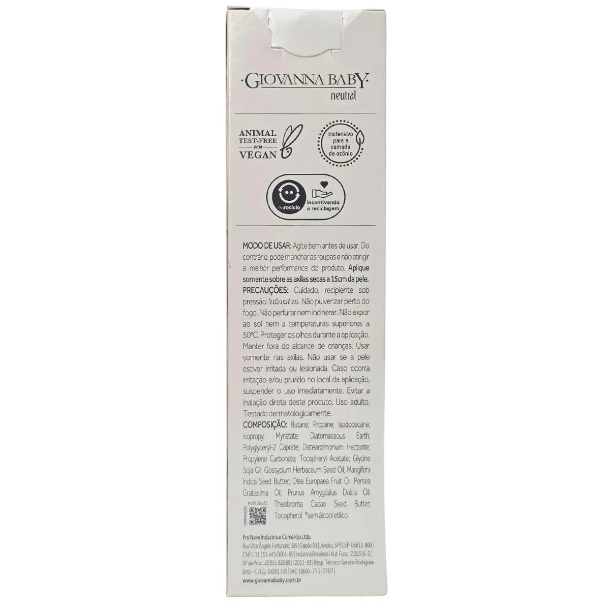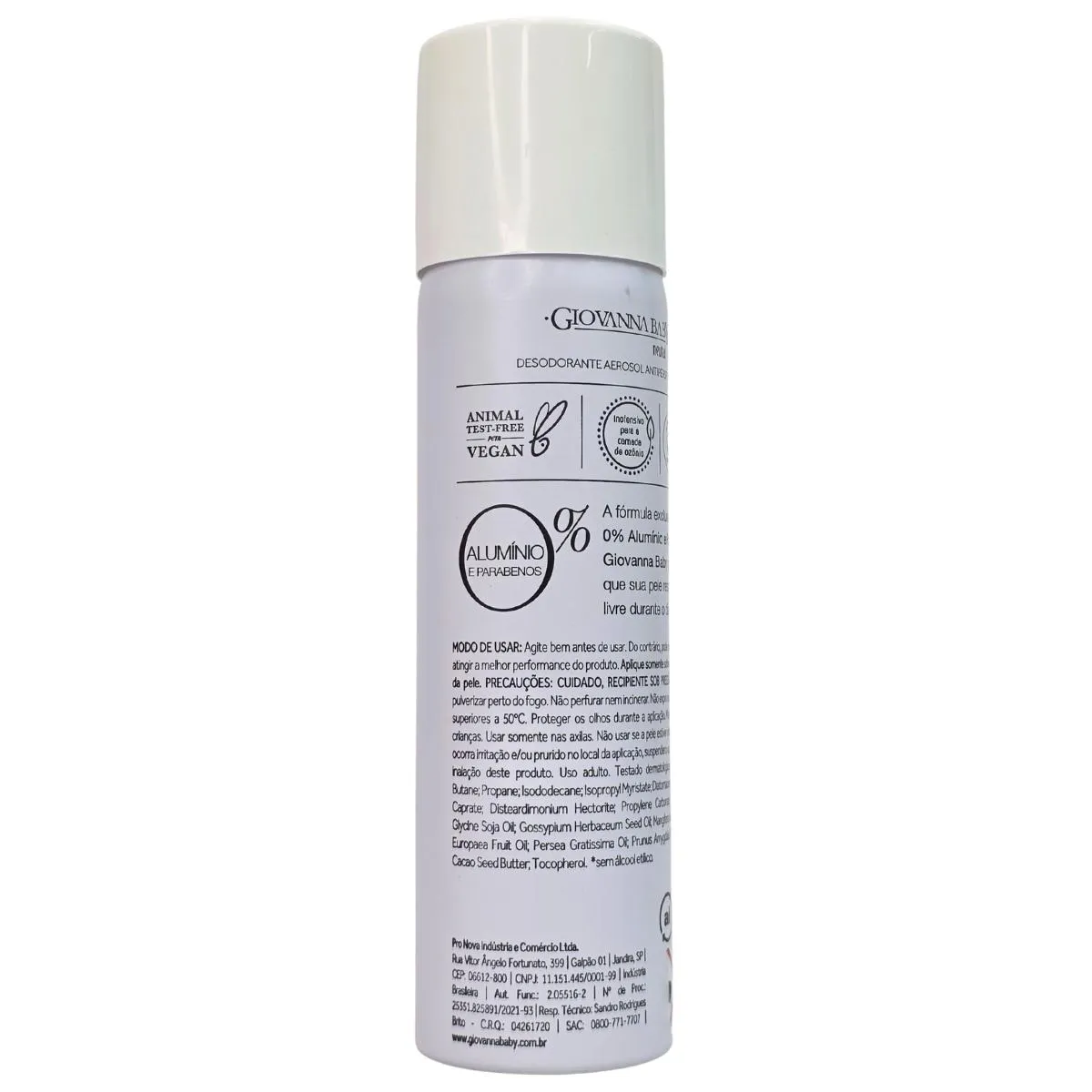 Finalidade: A fórmula exclusiva 0% Alumínio e Parabenos Giovana Baby possui ingredientes de origem natural e mineral que garantem o controle da transpiração e do odor, promovendo segurança, conforto e bem-estar por todo dia.