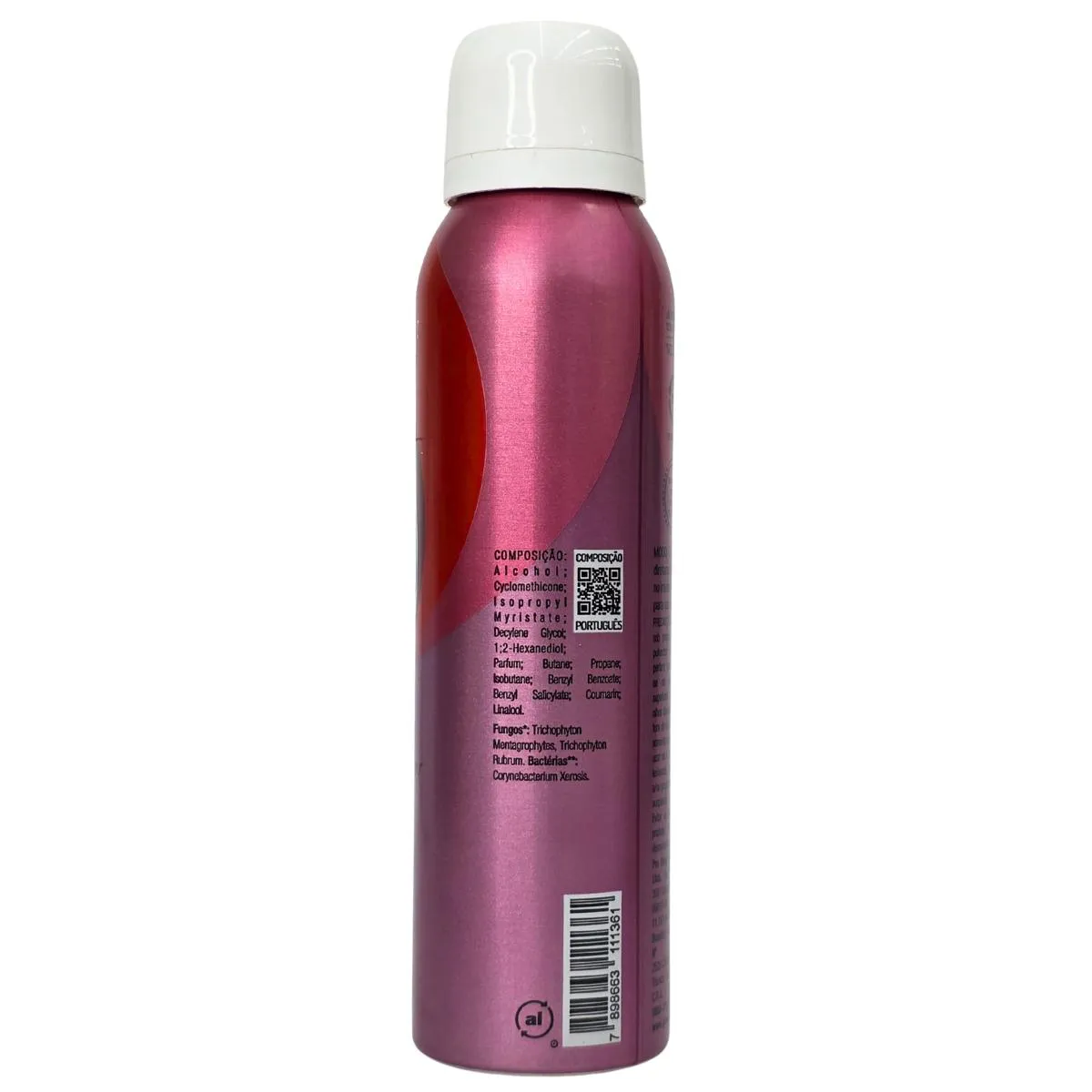Composição: alcohol; cyclomethicone; isopropyl myristate; decylene glycol; 1;2-hexanediol; parfum; butane; propane; isobutane; benzyl benzoate; benzyl salicylate; coumarin; linalool.