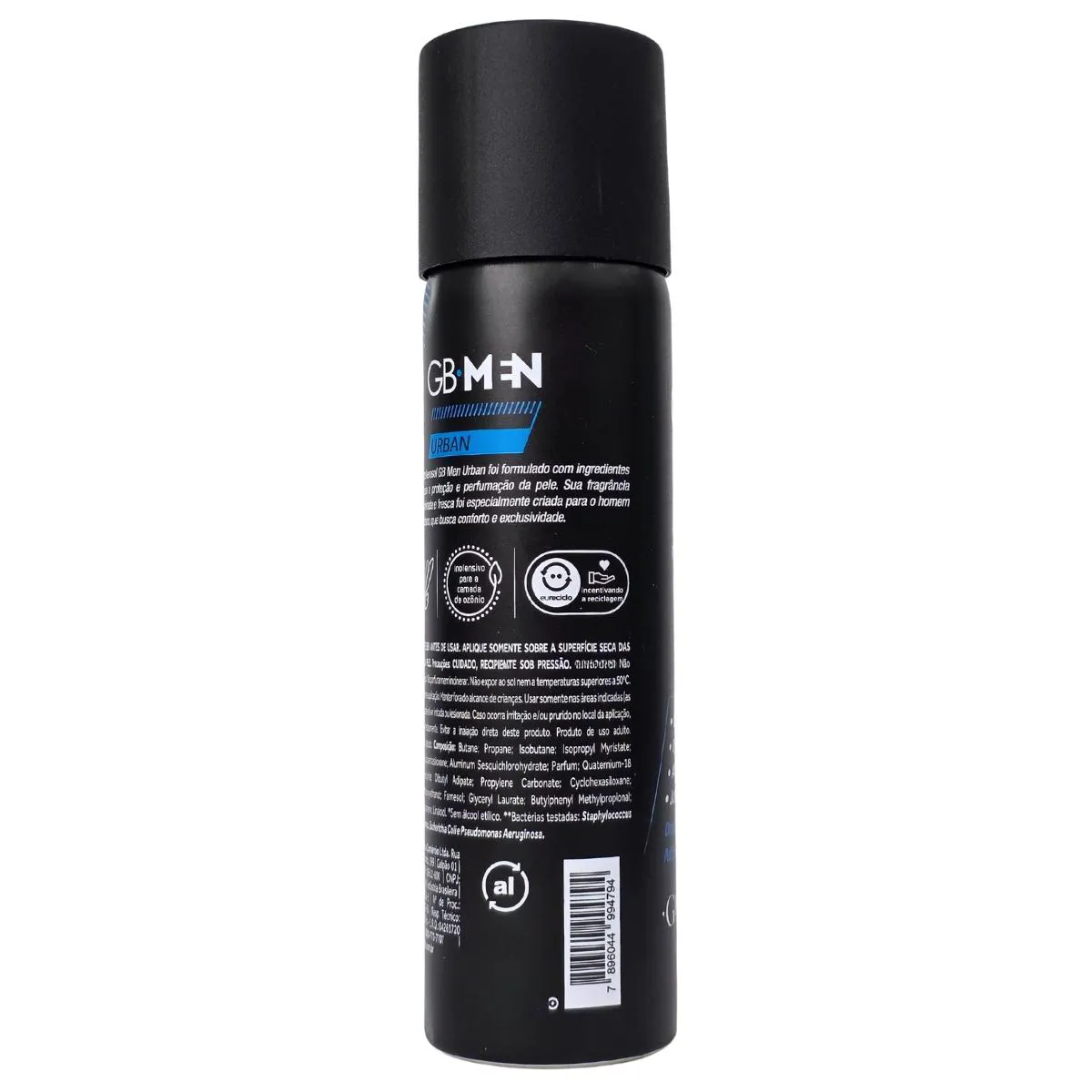 Finalidade: O Desodorante Aerossol GB Men Urban foi especialmente formulado com ingredientes que atuam para proteção e perfumação da pele. Sua fragrância oriental, amadeirada e fresca foi especialmente criada para o homem moderno e urbano, que busca conforto e exclusividade.